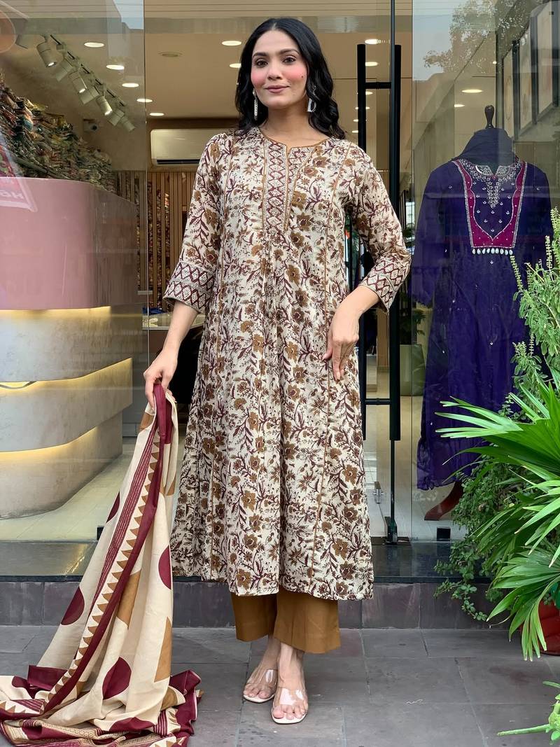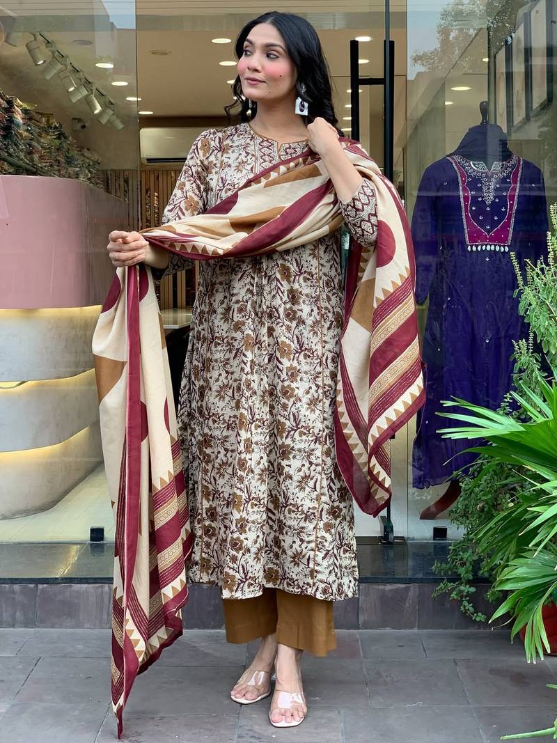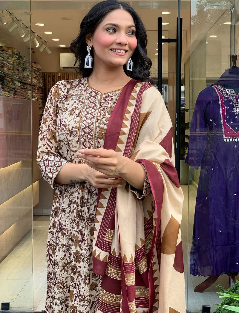 Cream color beautiful megic cotton fabric graceful ceremonial kurti set