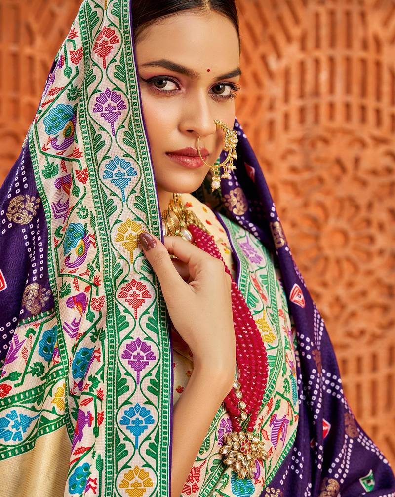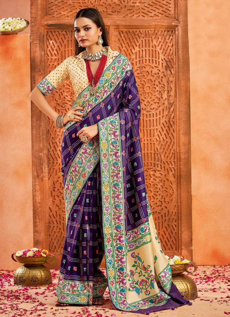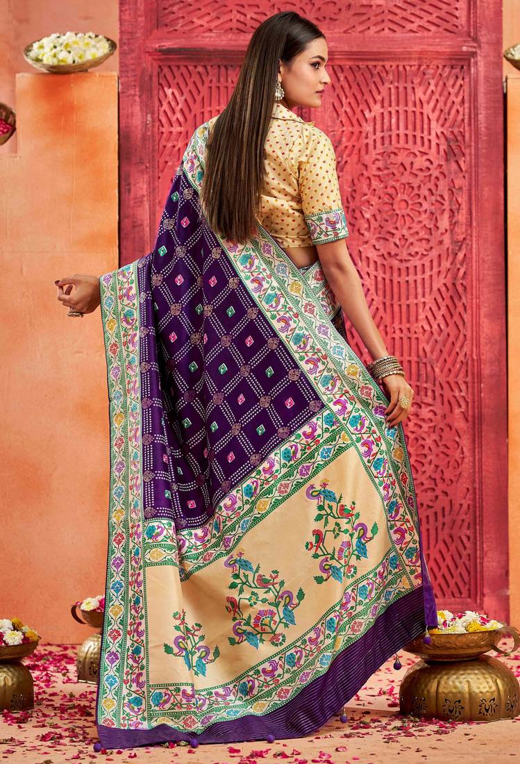 | Product Name | Dark Purple Color Velvet Tussar Silk Blend Fabric Partywear Saree With Paithani Pallu And Traditional Ghatchola Print | |