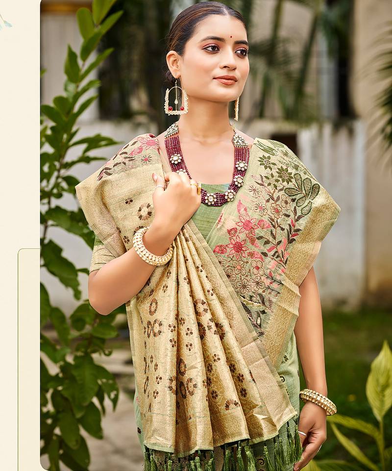 | Product Name | Green Color Cotton Silk Fabric Woven Meenakari Designer Saree | |
