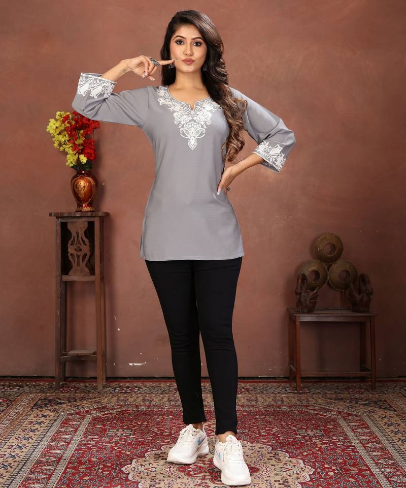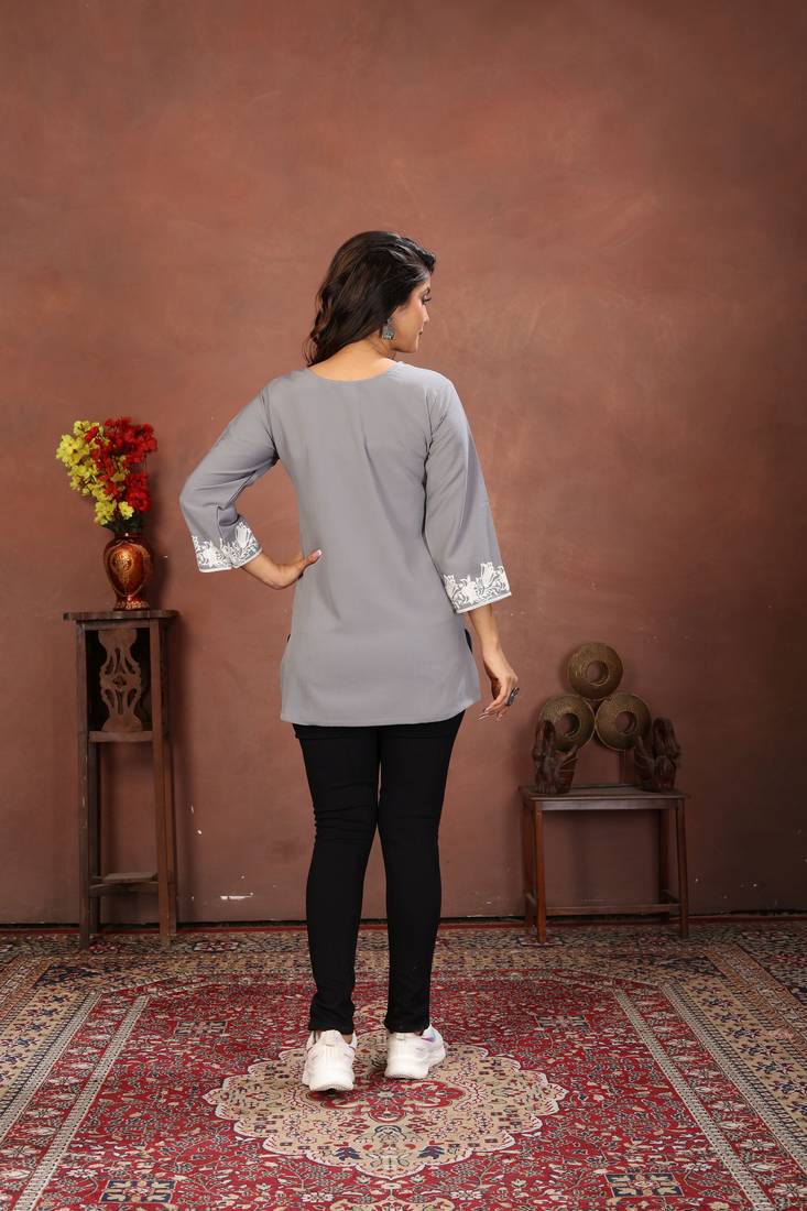 | Product Name | Grey Rinkal Cotton Embroidered Formal Looking Casual Short Kurta | |
