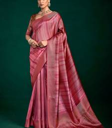 Light pink color beautiful tussar silk blend fabric sophisticated woven designer saree