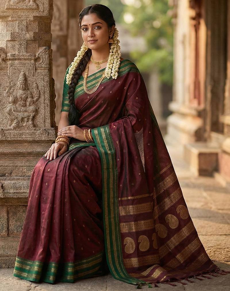 | Product Name | Maroon Color Soft Silk Fabric Woven Jari Designer Ethnic Party Looks Saree | |