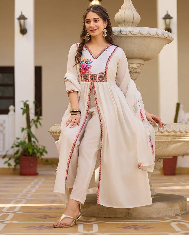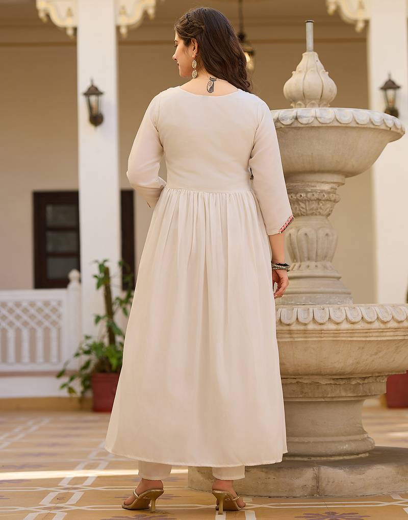 | Product Name | Off White Silk Embroidered Ceremonial Readymade Kurta Set With Dupatta | |
