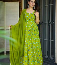 | Product Name | Parrot Green Color Beautiful Printed Partywear Gown For Trendy Girls | |