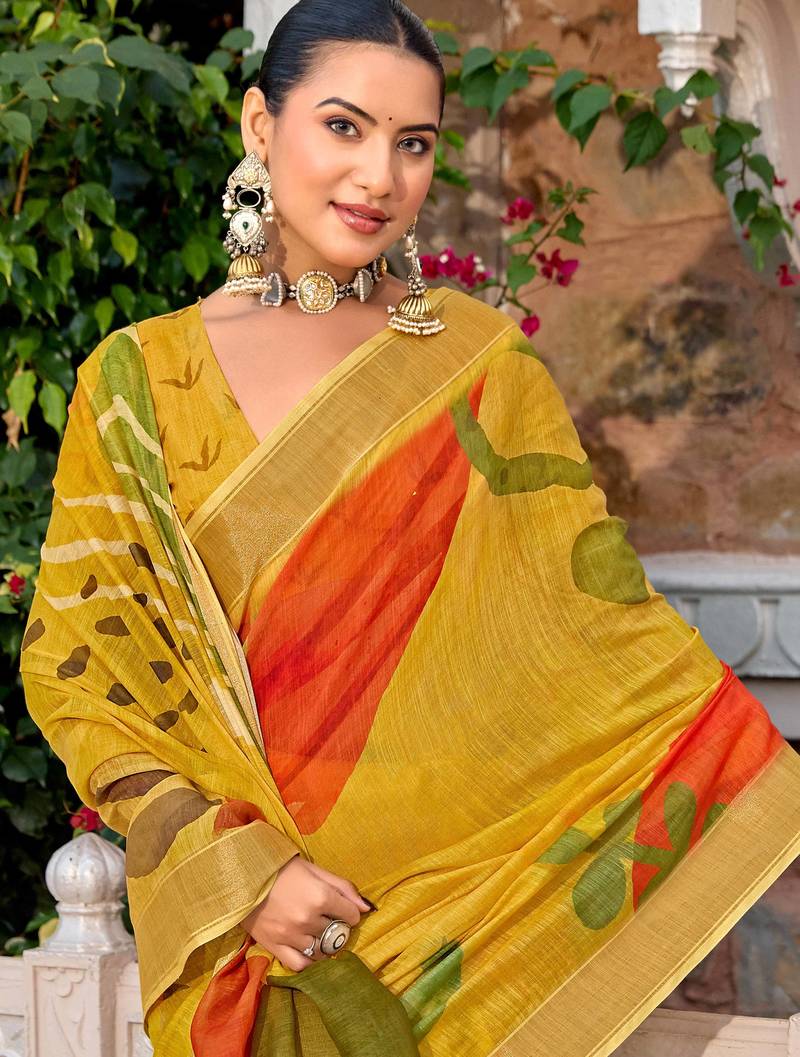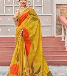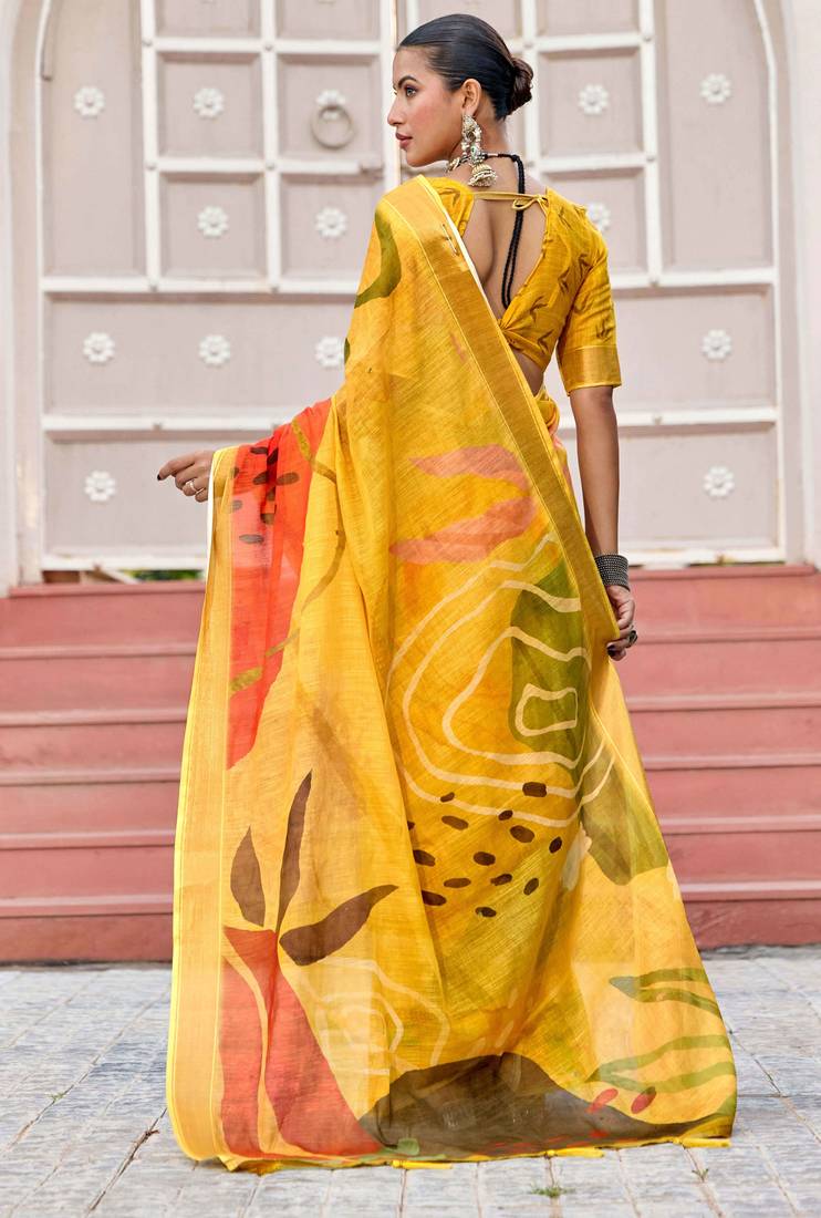 Yellow color beautiful linen art silk fabric saree with sophisticated partywear saree