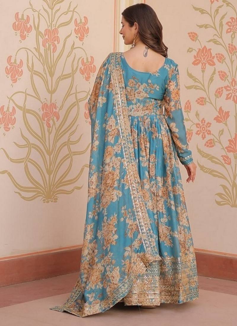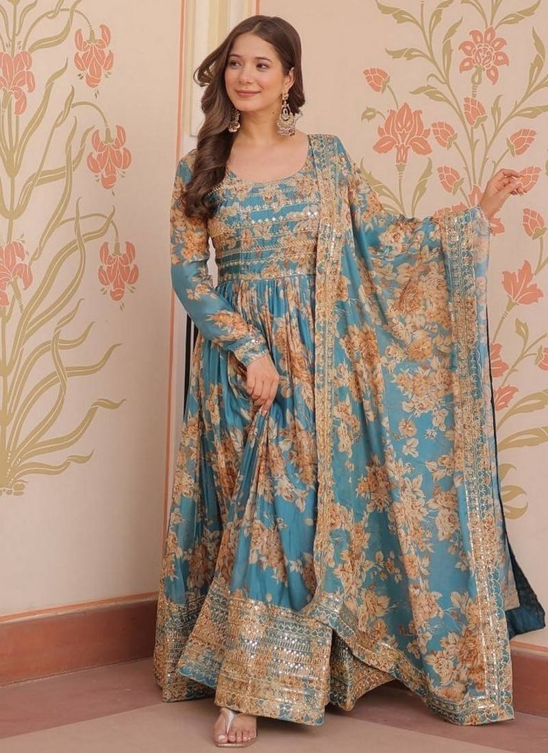 | Product Name | Blue Zari & Sequins Embroidered Work Russian Silk Stitched Kurta & Dupatta Set | |