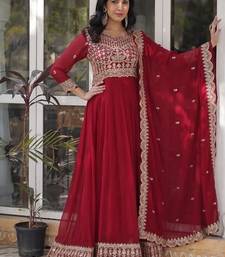 Maroon zari & sequins embroidered work georgette stitched kurta & dupatta set