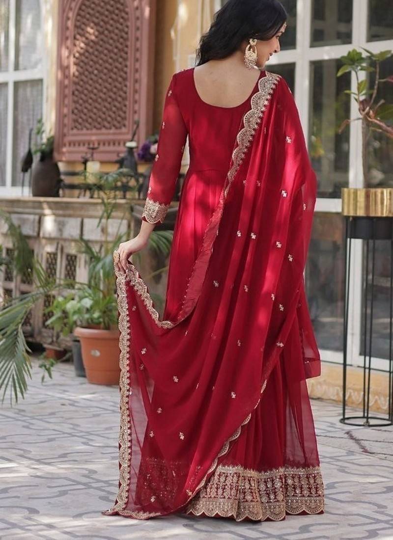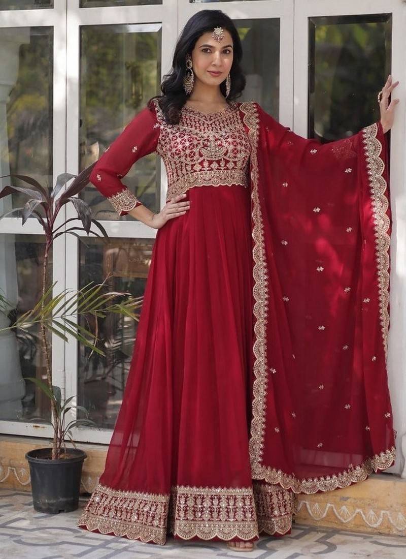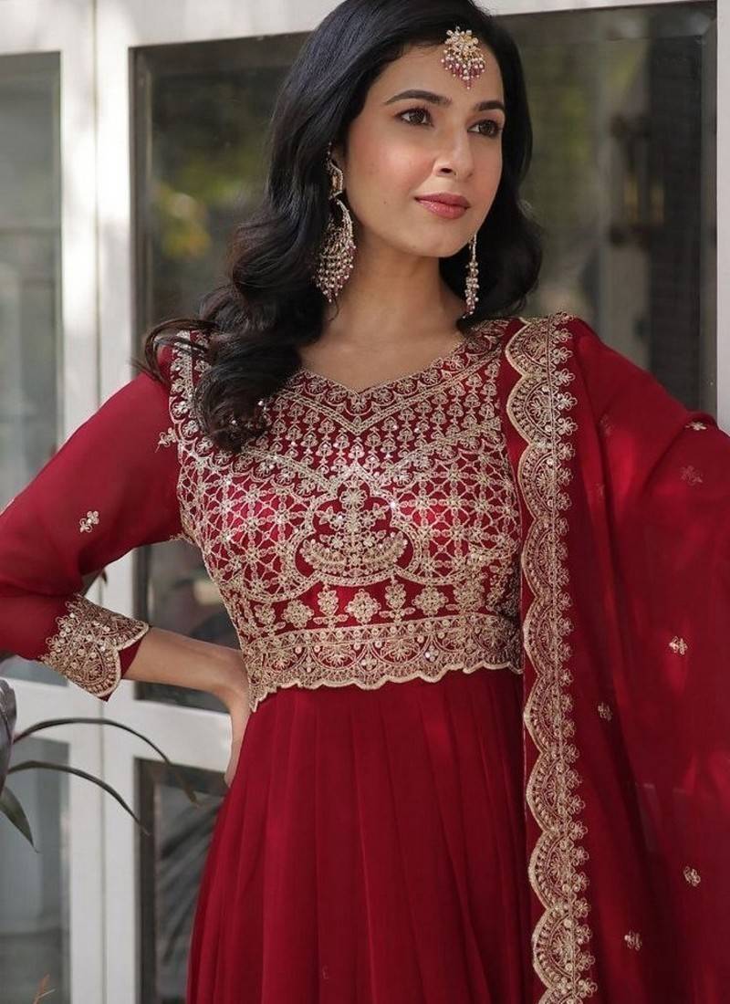 | Product Name | Maroon Zari & Sequins Embroidered Work Georgette Stitched Kurta & Dupatta Set | |