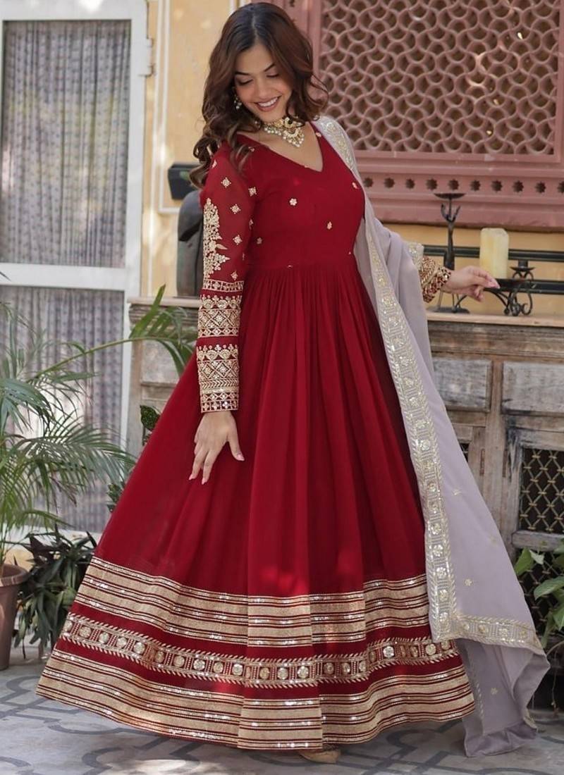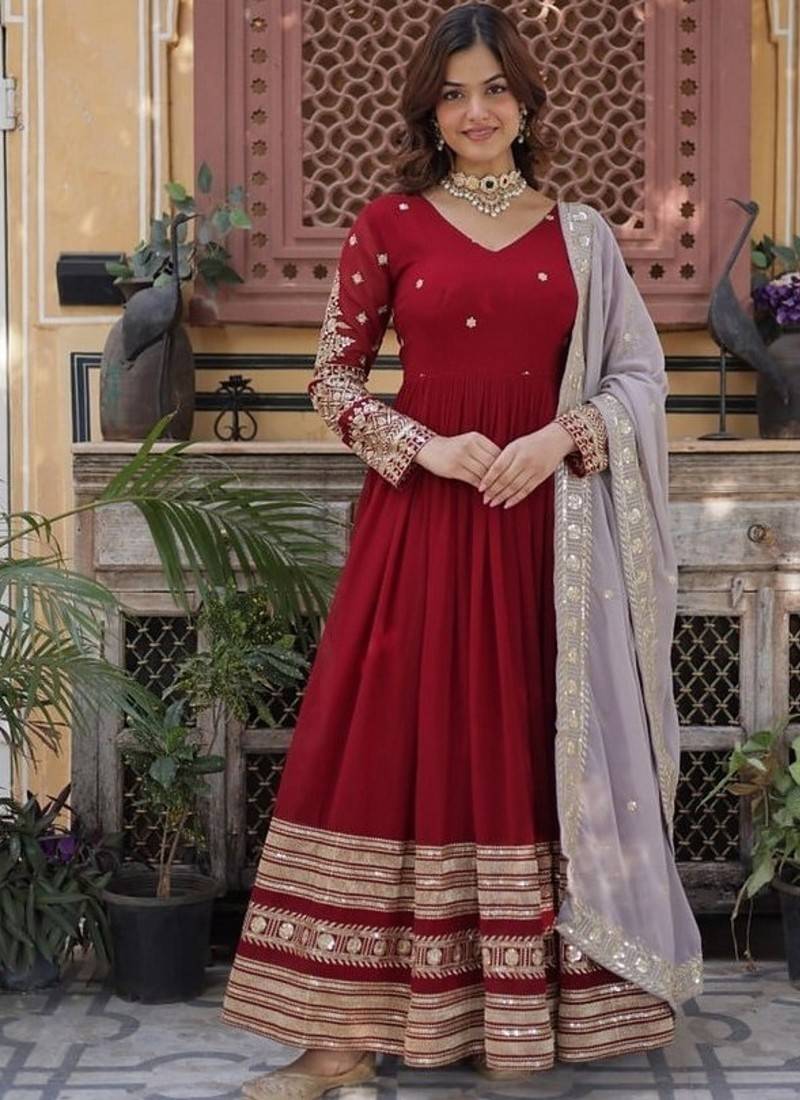 | Product Name | Maroon Zari & Sequins Embroidered Work Georgette Stitched Kurta & Dupatta Set | |