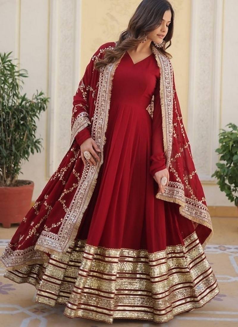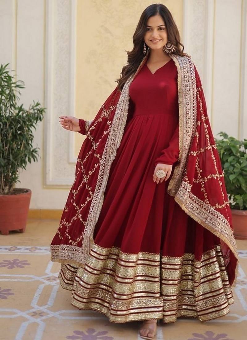| Product Name | Maroon Zari & Sequins Embroidered Work Georgette Stitched Kurta & Dupatta Set | |