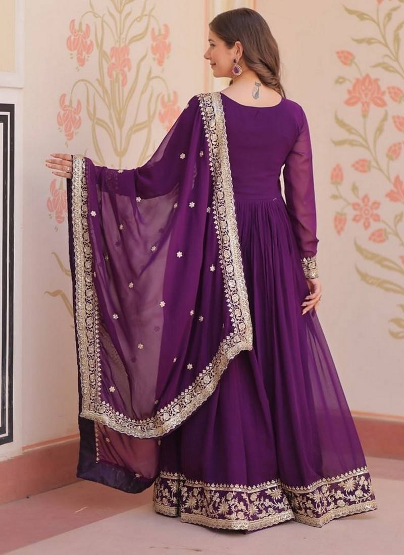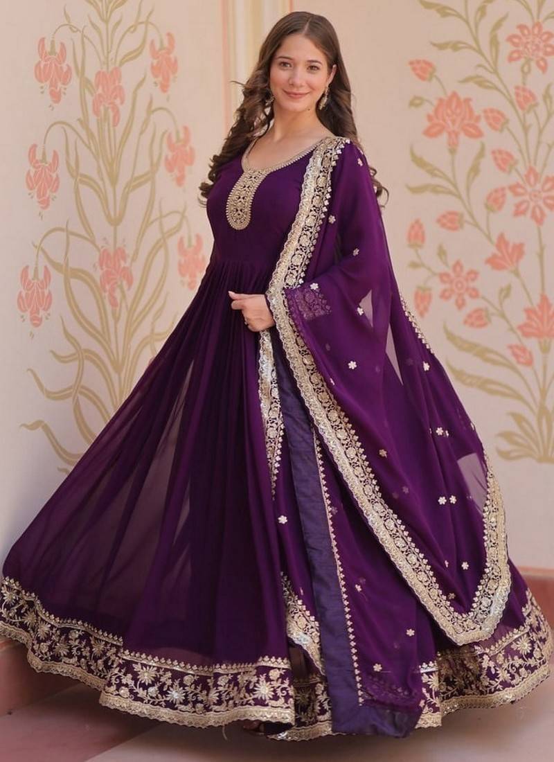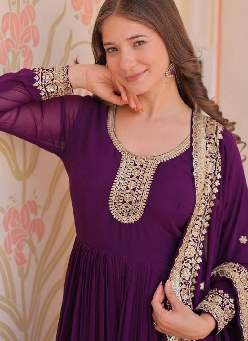 | Product Name | Purple Zari & Sequins Embroidered Work Georgette Stitched Kurta & Dupatta Set | |
