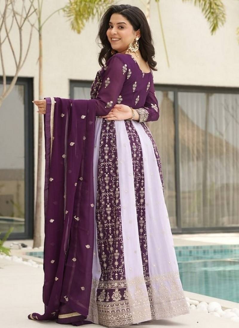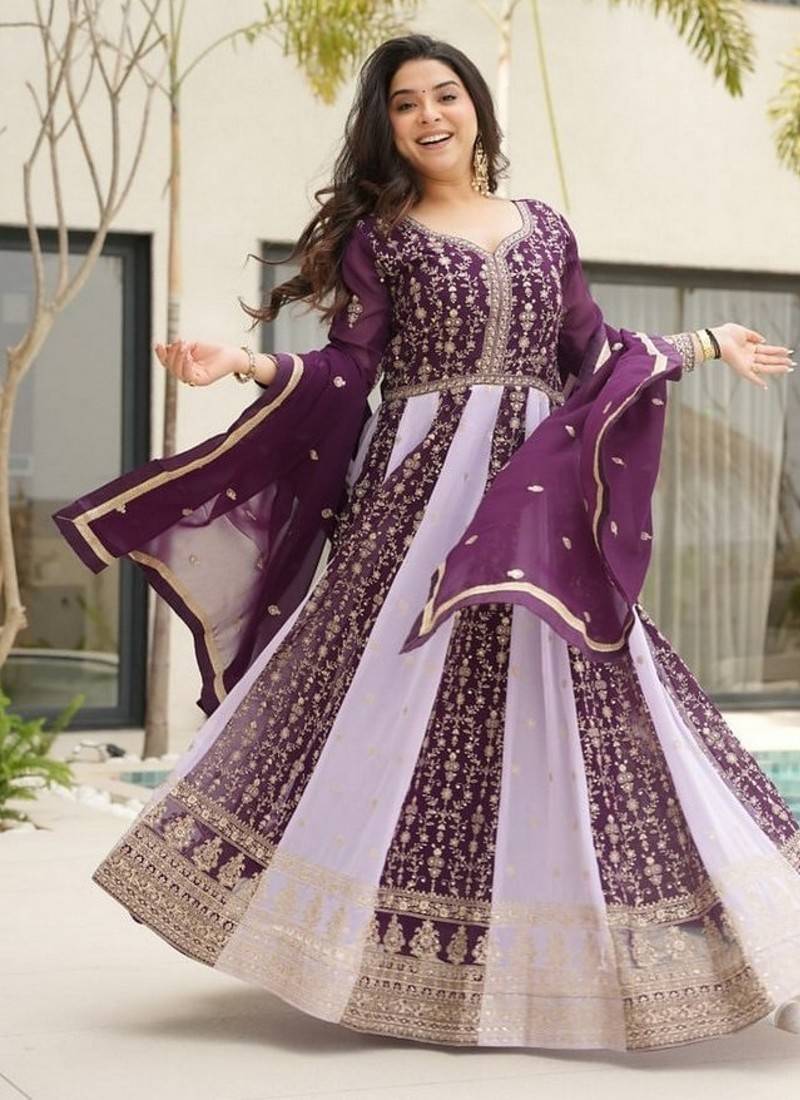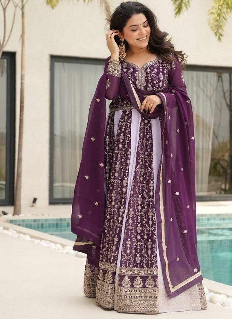 | Product Name | Purple Zari & Sequins Embroidered Work Georgette Stitched Kurta & Dupatta Set | |