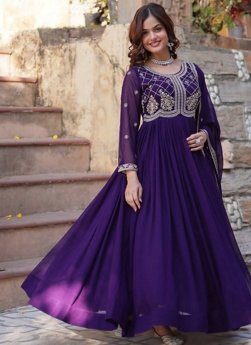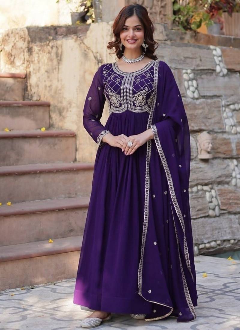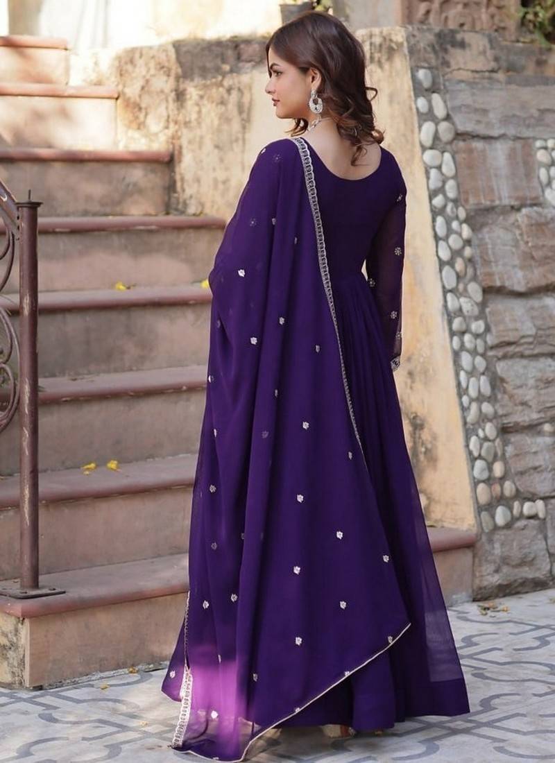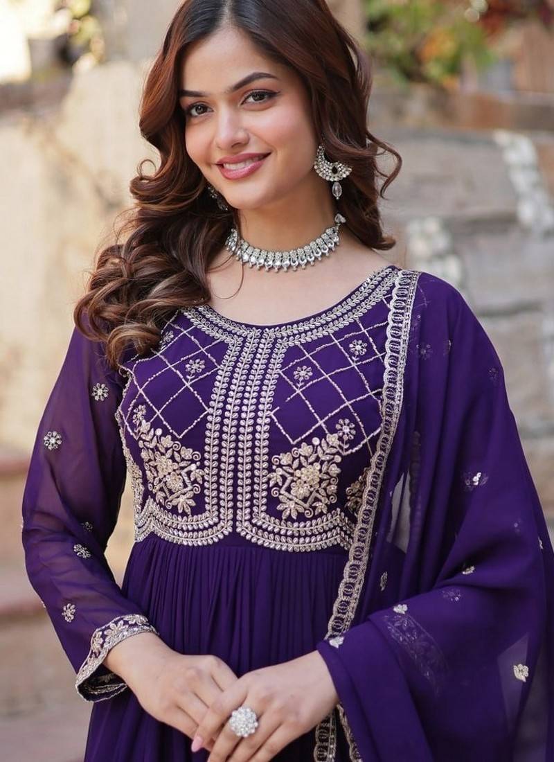 | Product Name | Purple Zari & Sequins Embroidered Work Georgette Stitched Kurta & Dupatta Set | |