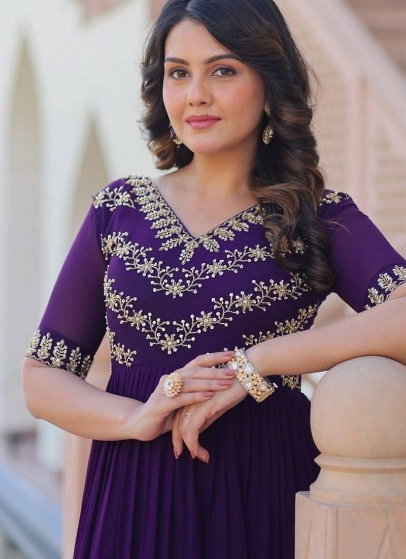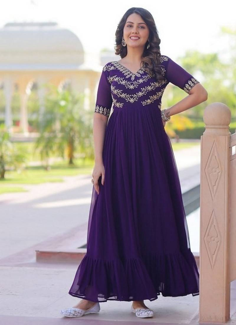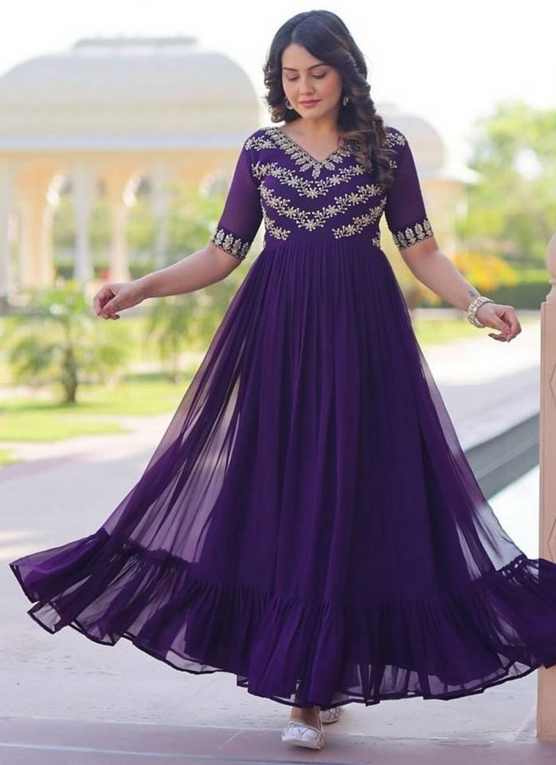 | Product Name | Purple Zari & Sequins Embroidered Work Georgette Stitched Kurta Gown | |