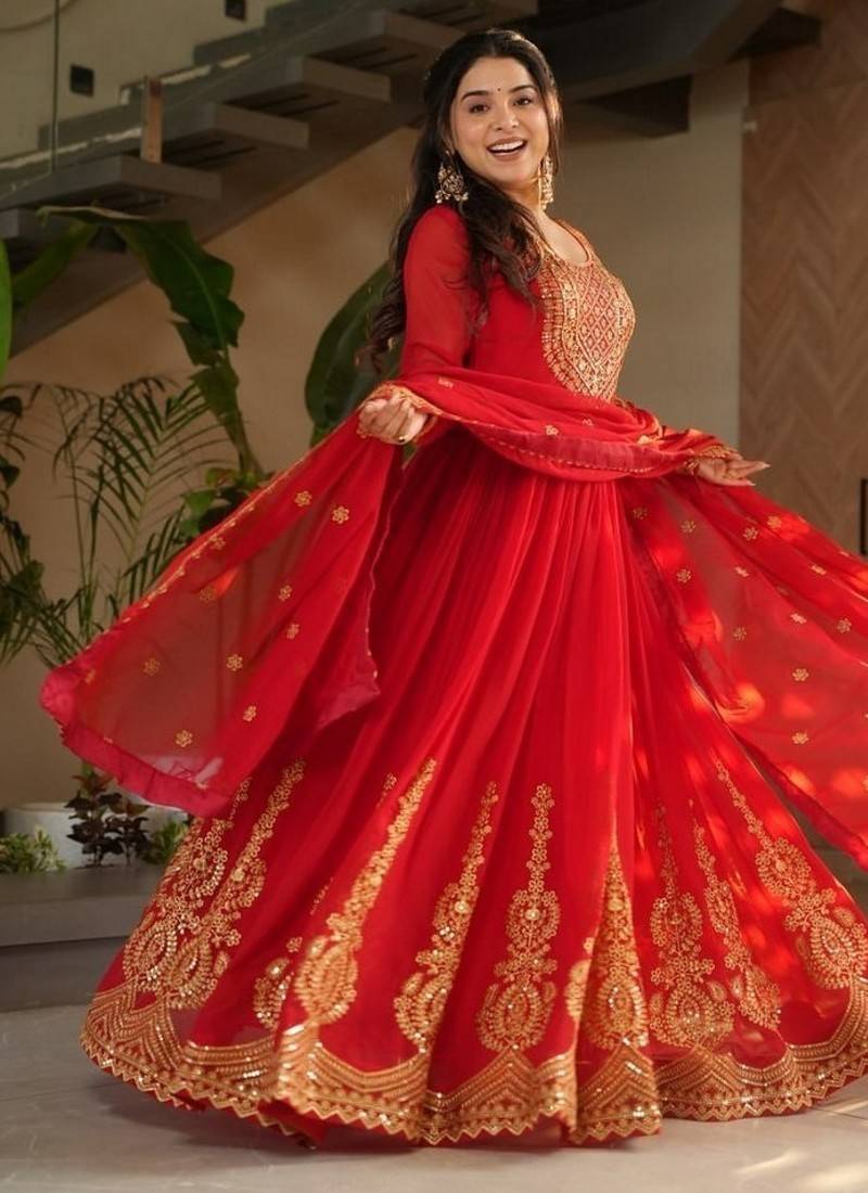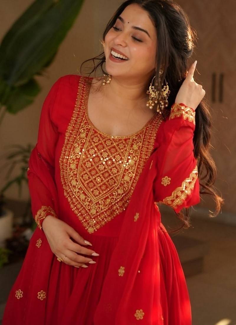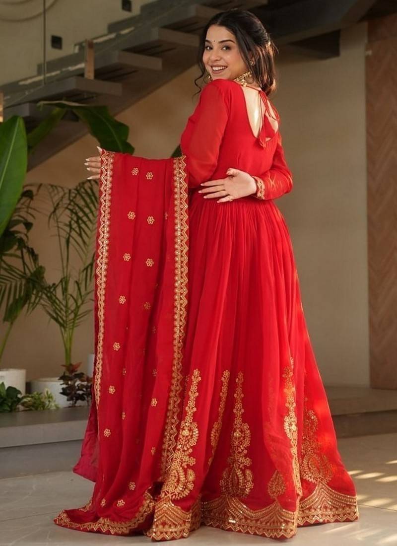 | Product Name | Red Zari & Sequins Embroidered Work Georgette Stitched Kurta & Dupatta Set | |