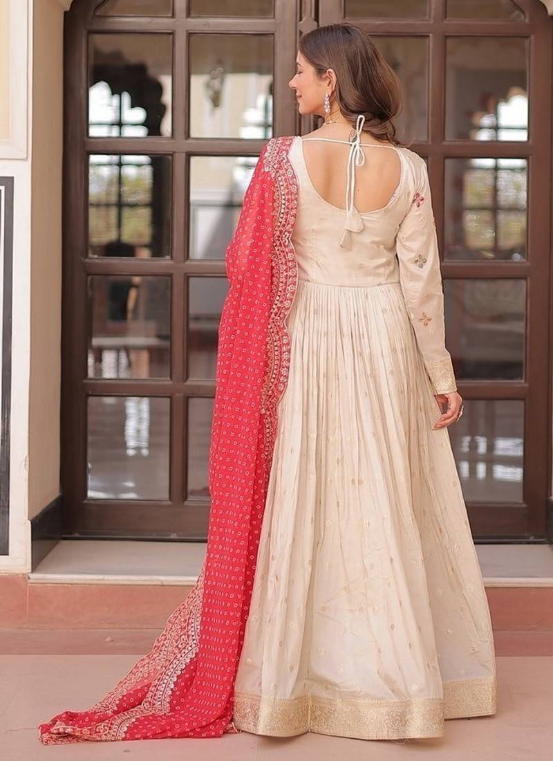 | Product Name | Red Zari & Sequins Embroidered Work Jequard & Kurta Set For Women | |