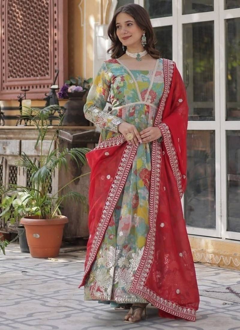| Product Name | Red Zari & Sequins Embroidered Work Russian Silk Stitched Kurta & Dupatta Set | |