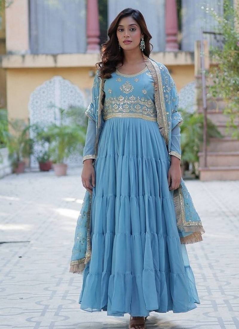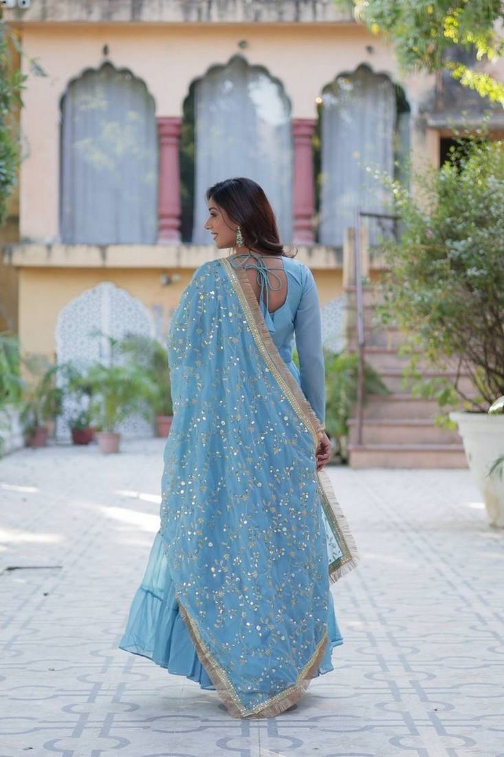 | Product Name | Sky Zari & Sequins Embroidered Work Georgette Stitched Kurta & Dupatta Set | |