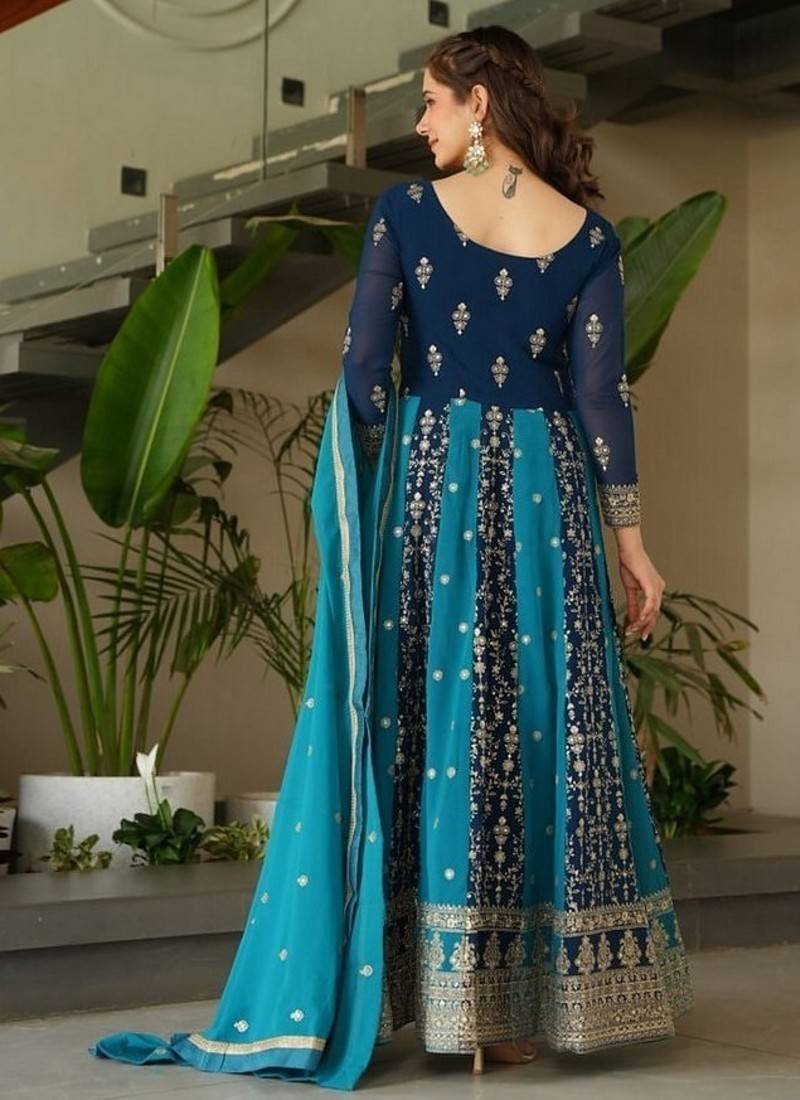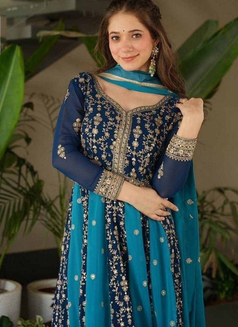| Product Name | Teal Zari & Sequins Embroidered Work Georgette Stitched Kurta & Dupatta Set | |