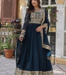 Teal zari & sequins embroidered work georgette stitched kurta & dupatta set