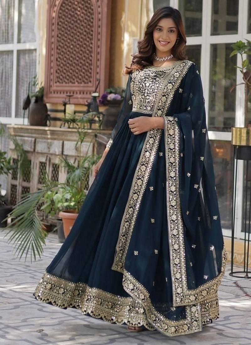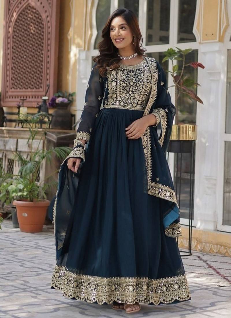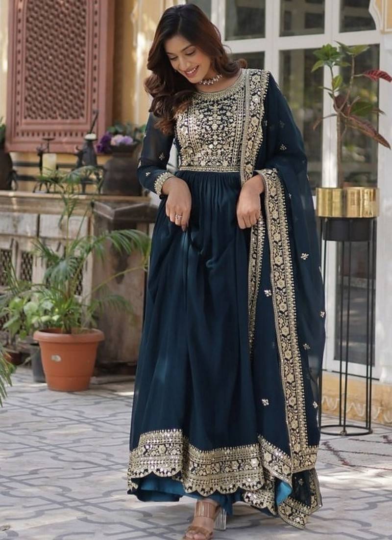 | Product Name | Teal Zari & Sequins Embroidered Work Georgette Stitched Kurta & Dupatta Set | |