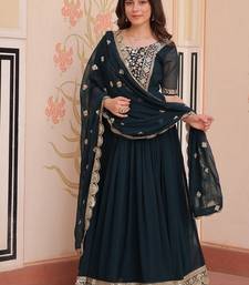 Teal zari & sequins embroidered work georgette stitched kurta & dupatta set