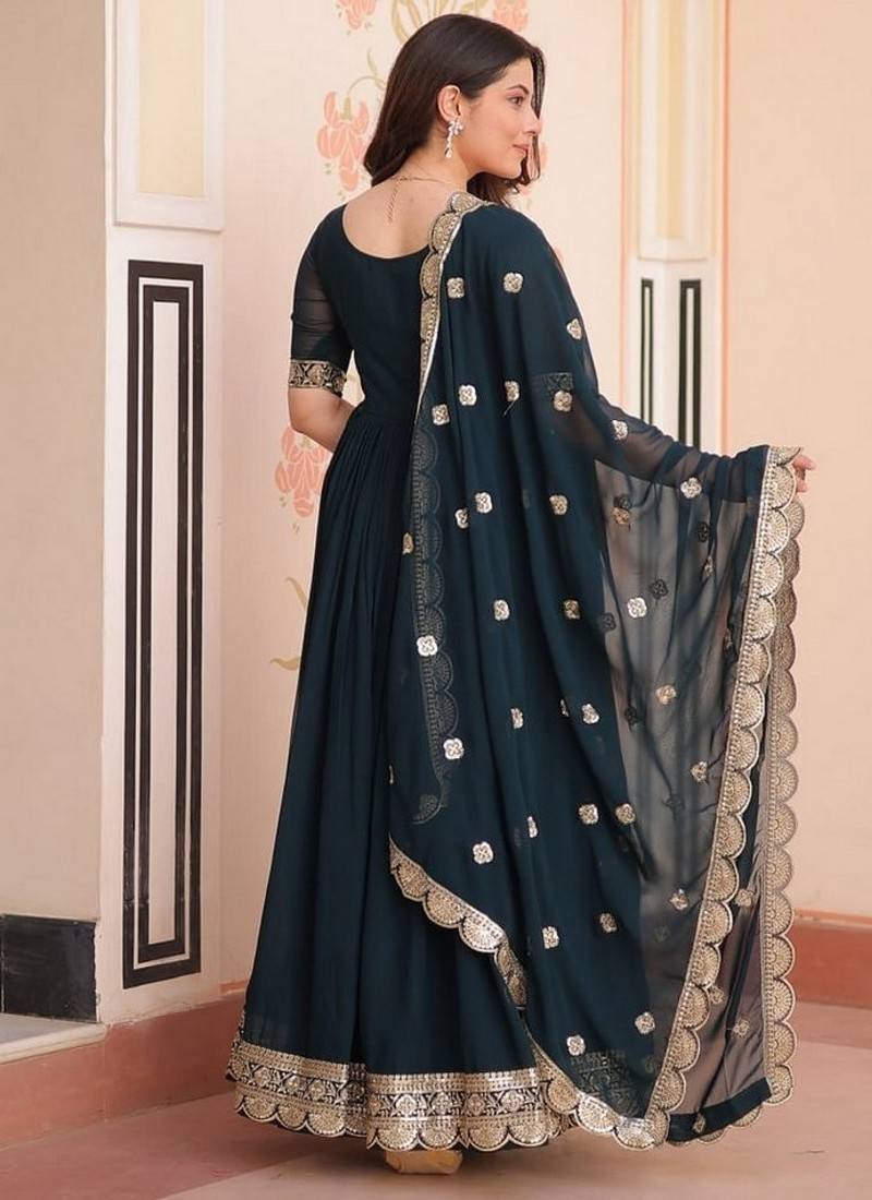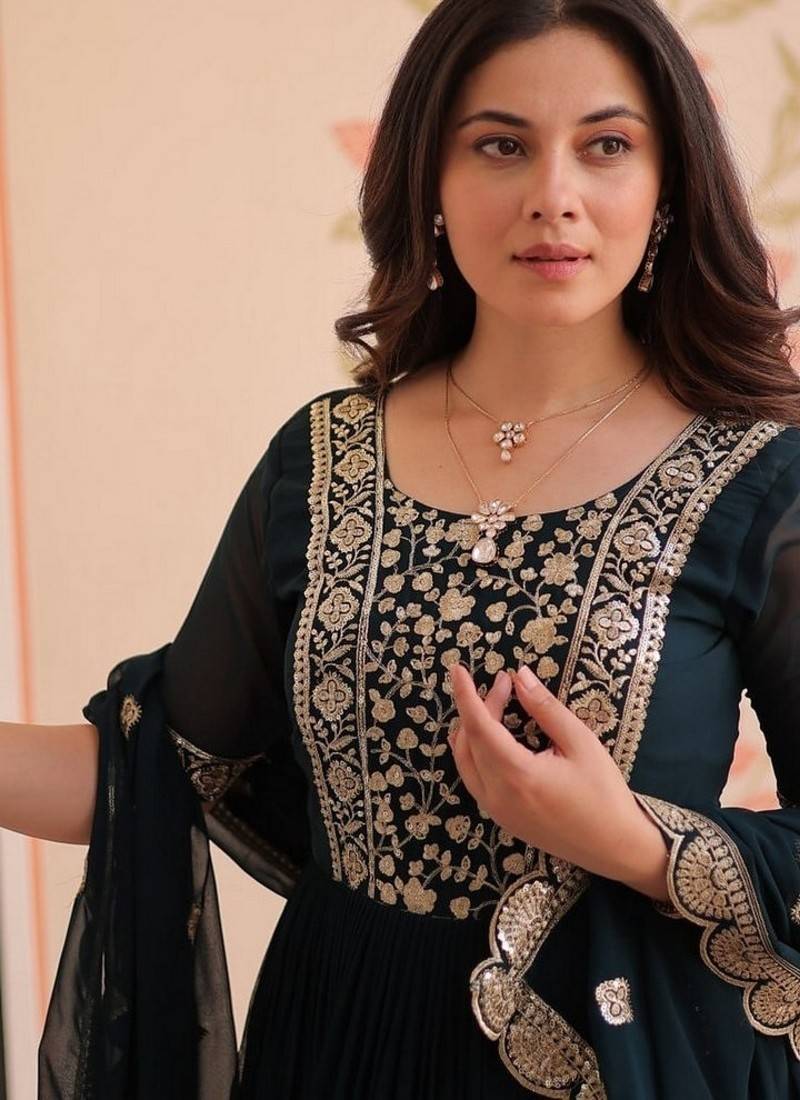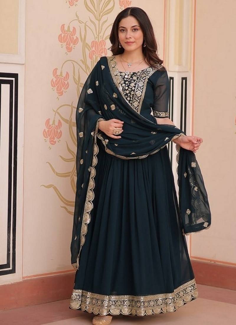 | Product Name | Teal Zari & Sequins Embroidered Work Georgette Stitched Kurta & Dupatta Set | |