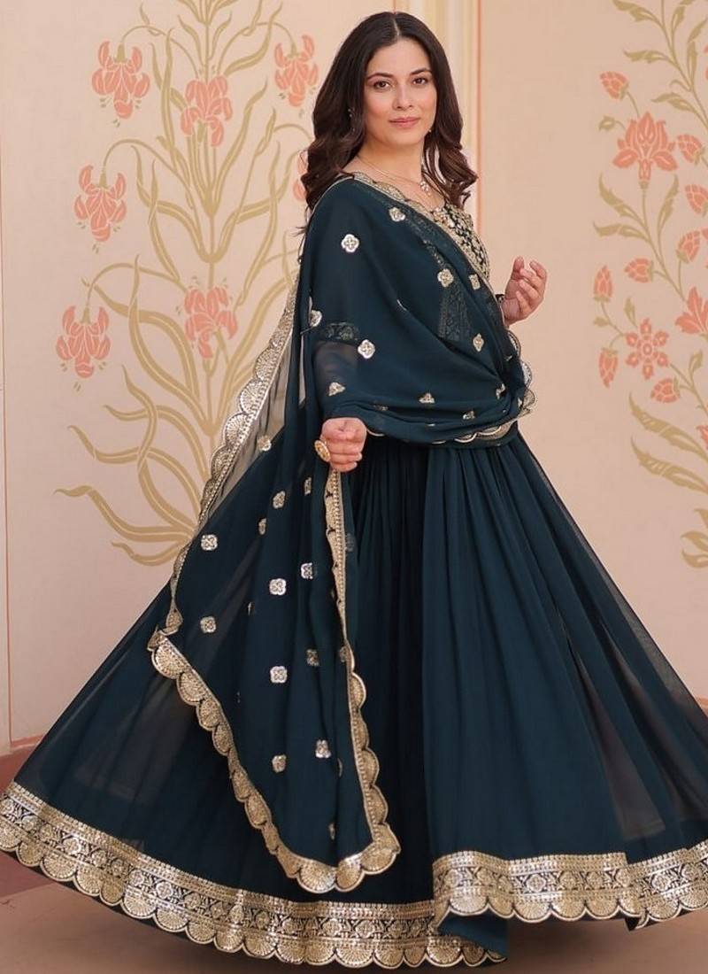 | • | Dupatta | : | Color- Teal / Fabric- Faux Georgette |