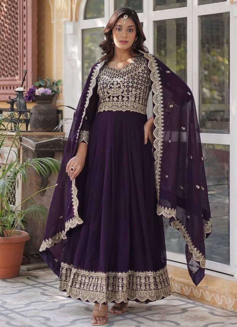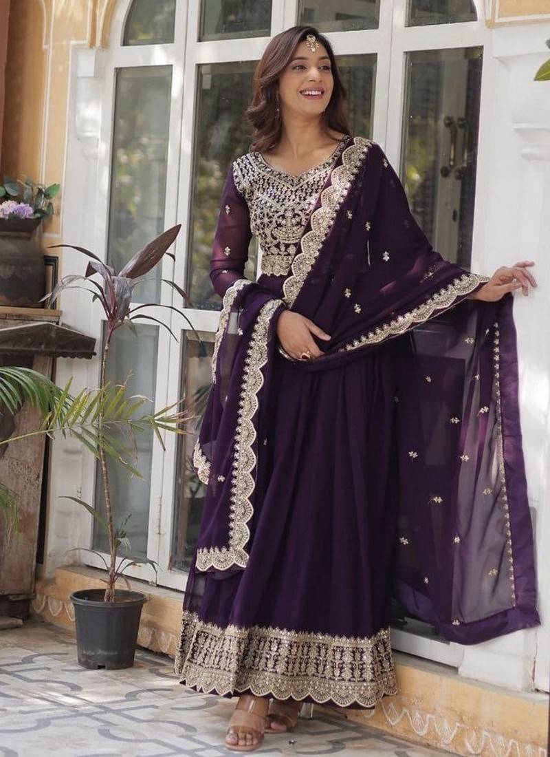 | Product Name | Wine Zari & Sequins Embroidered Work Georgette Stitched Kurta & Dupatta Set | |