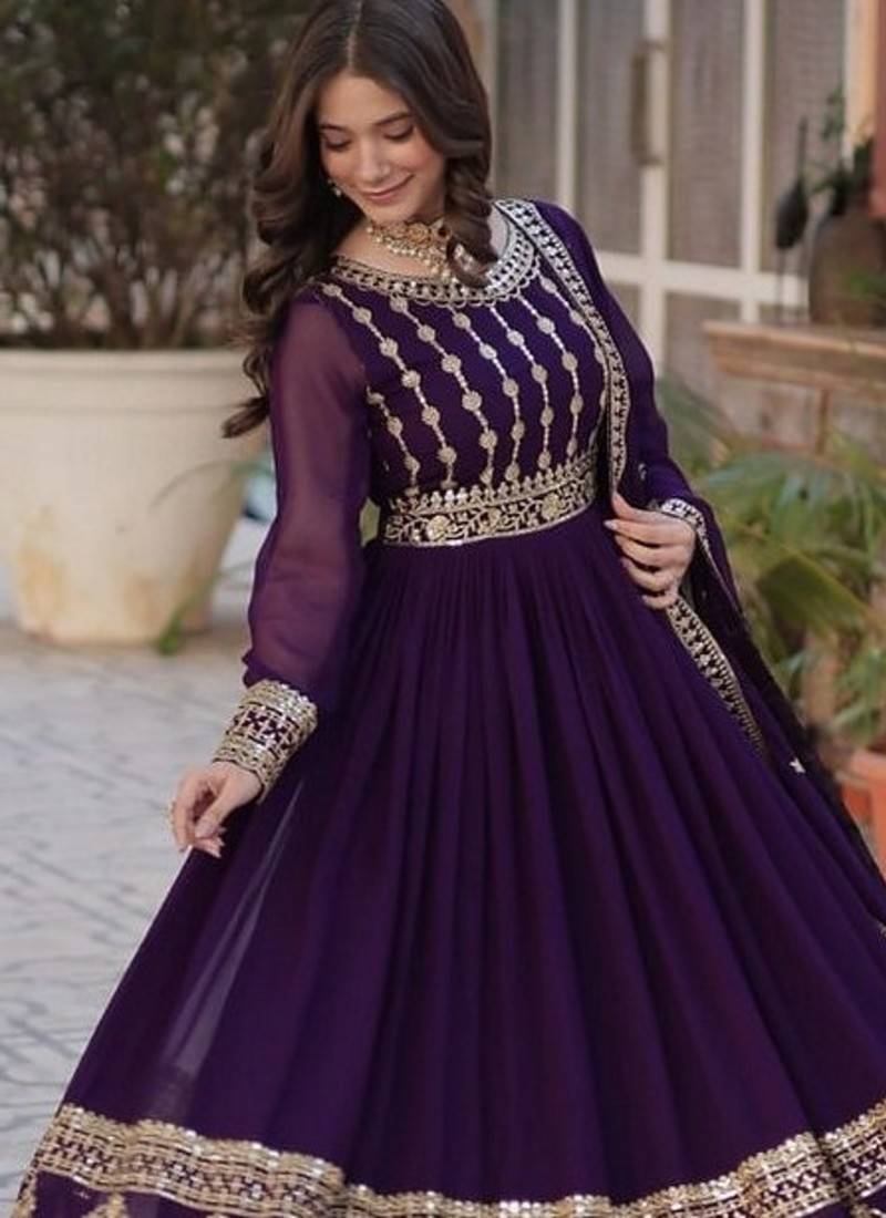 | Product Name | Wine Zari & Sequins Embroidered Work Georgette Stitched Kurta & Dupatta Set | |