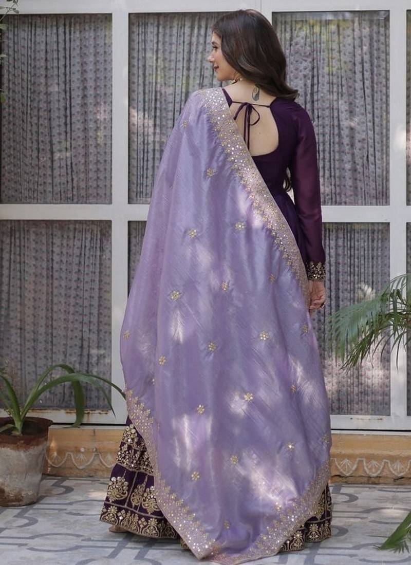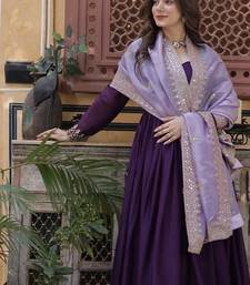 Wine zari & sequins embroidered work georgette stitched kurta & dupatta set