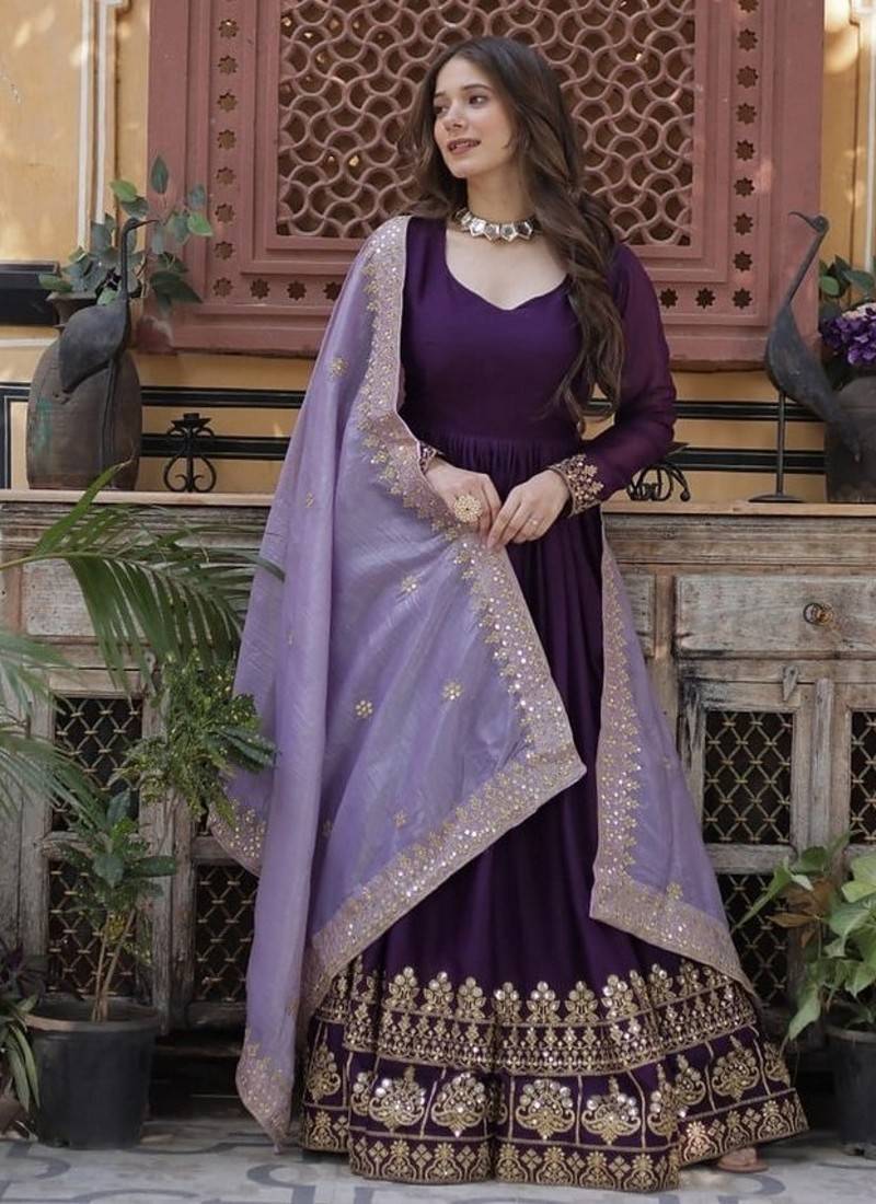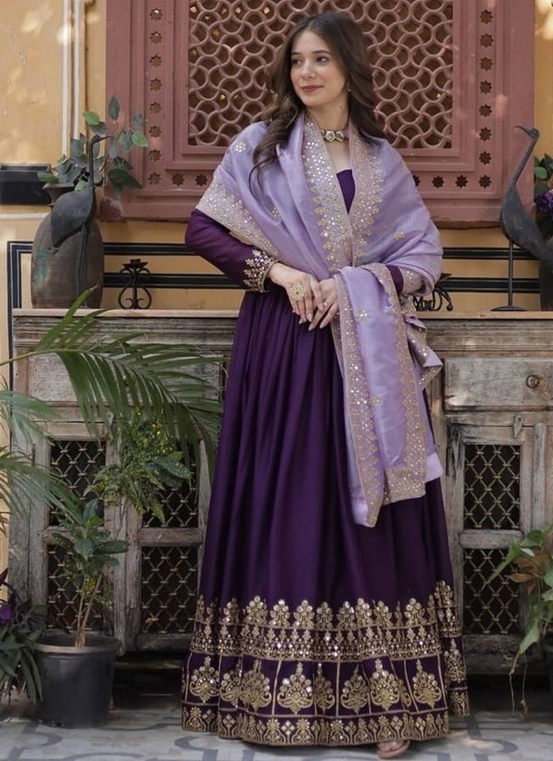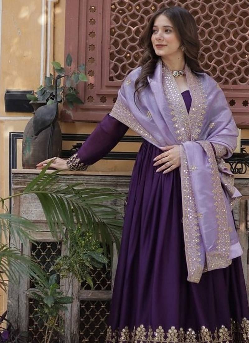 | Product Name | Wine Zari & Sequins Embroidered Work Georgette Stitched Kurta & Dupatta Set | |