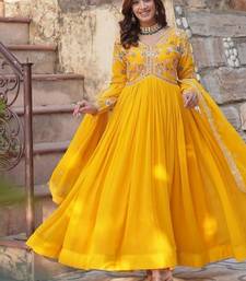 Yellow zari & sequins embroidered work georgette stitched kurta & dupatta set