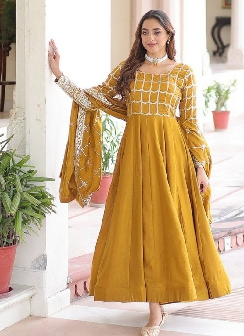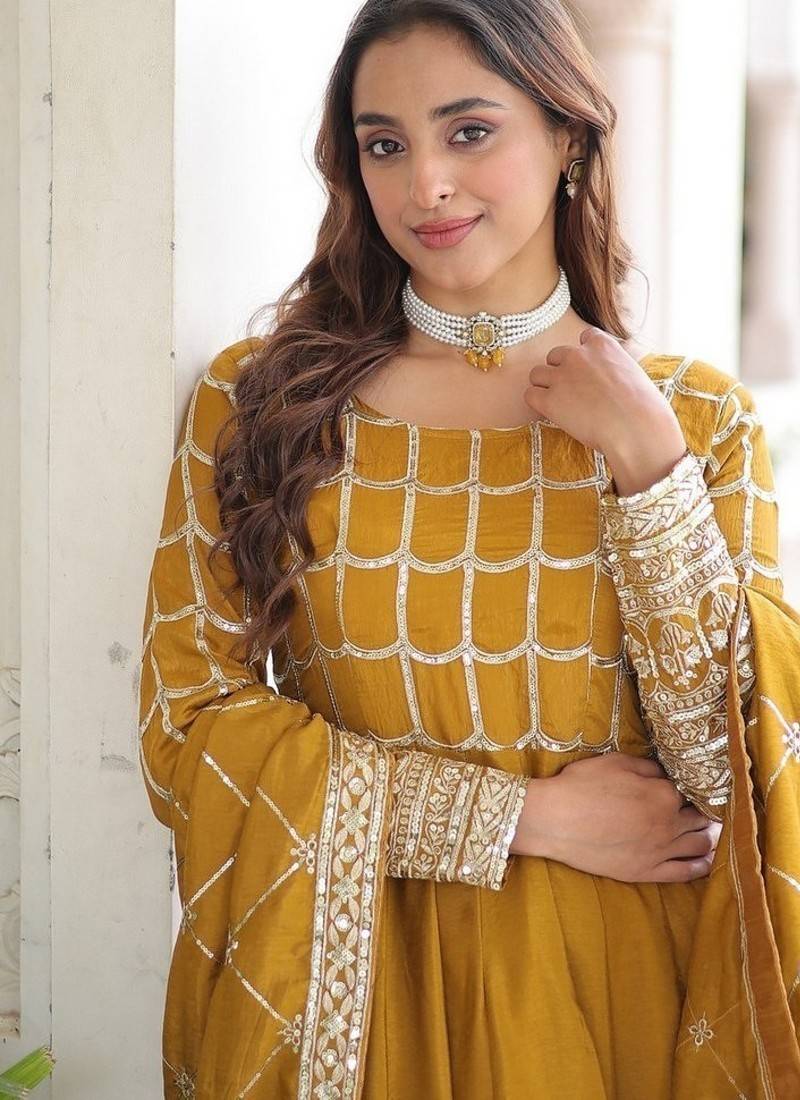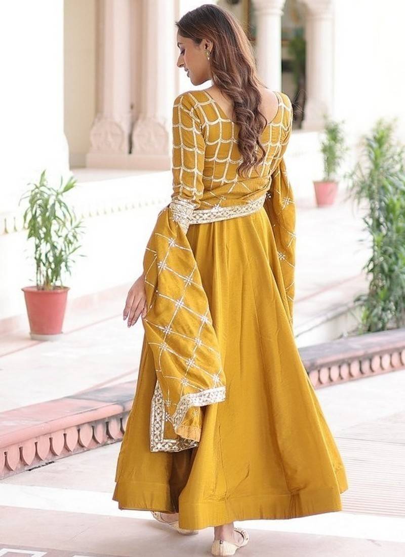 | Product Name | Yellow Zari & Sequins Embroidered Work Vichitra Silk Stitched Kurta & Dupatta | |