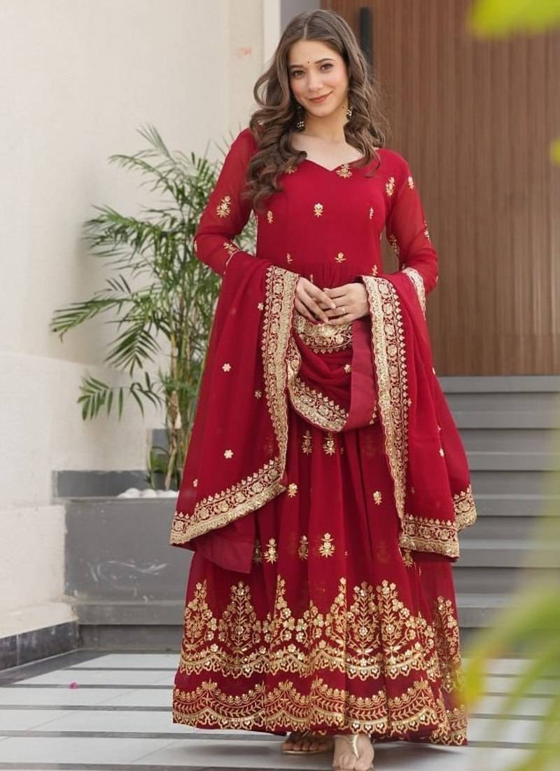 | • | Kameez | : | Color- Maroon / Fabric- Faux Georgette |