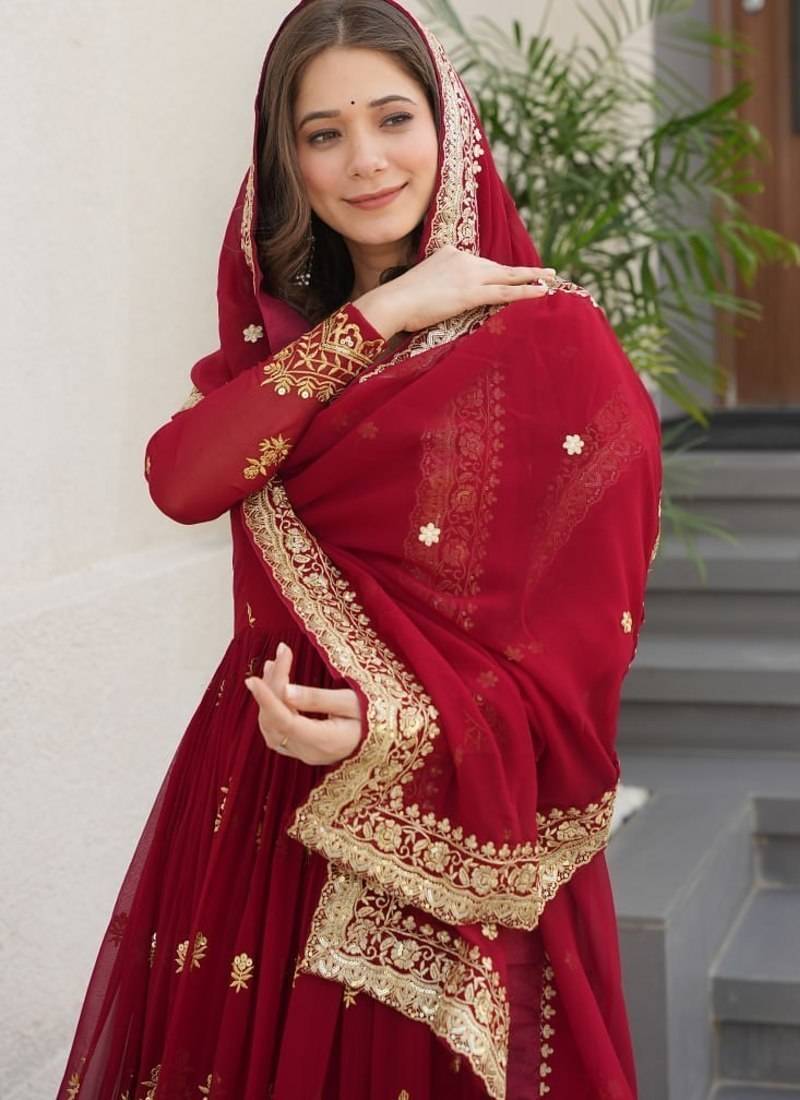 | • | Dupatta | : | Color- Maroon / Fabric- Faux Georgette |
