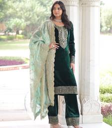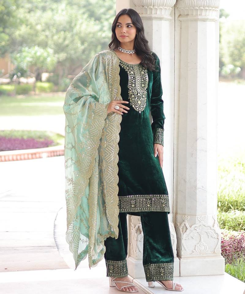 Velvet and sequins & zari embroidered work designer readymade top-pant-dupatta collections stitched