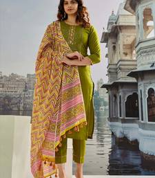 Women's muslin silk floral embroidered mehendi kurta pant set with chanderi dupatta stitched