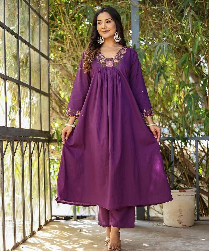 | Product Description | Embrace Timeless Elegance With This Stunning Purple Kurta Set For Women, Beautifully Crafted In Premium Rayon Silk For A Smooth Texture And Graceful Drape. Designed With A Flattering V Neck And Adorned With Intricate Floral Embroidery, This Ensemble Reflects The Richness Of Traditional Embroidered Kurtis And Festive Inspired Heavy Work Kurtis. The Coordinated Bottom Completes This Refined Kurta Pant Set For Women, Offering Both Comfort And A Tailored Silhouette. Paired With A Delicately Detailed Embroidered Chanderi Dupatta, This Outfit Blends Heritage Craftsmanship With Modern Charm Inspired By Classic Pakistani Kurtis And Elegant Punjabi Kurtis. Perfect For Weddings, Festive Gatherings, And Cultural Celebrations, This Ensemble Makes A Beautiful Party Wear Kurta Set For Women, Ideal For Diwali Kurtis And Eid Kurtis Collections. Whether You're Searching For A Luxurious Silk Kurta Set For Women, A Complete Salwar Suit Set With Dupatta, Or A Graceful Women's Indian Salwar Kameez Set, This Outfit Delivers Sophistication And Festive Glamour. A Standout Among Premium Designer Kurta Sets And Stylish Kurtas And Kurtis, This Purple Beauty Adds Regal Charm And Elegance To Every Special Occasion. |