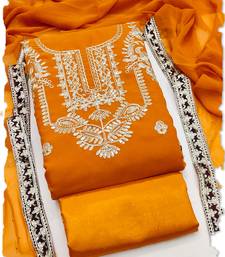Women's orange georgette salwar suit dress material with golden thread embroidery unstitched
