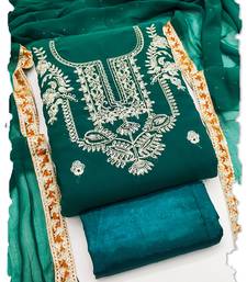 Women's teal georgette salwar suit dress material with golden thread embroidery unstitched