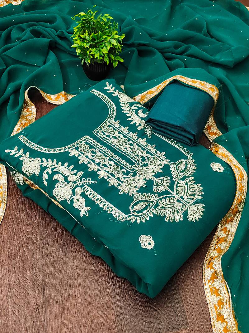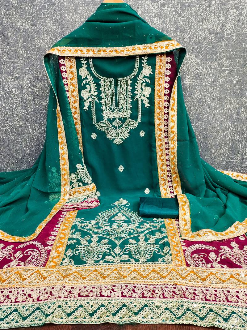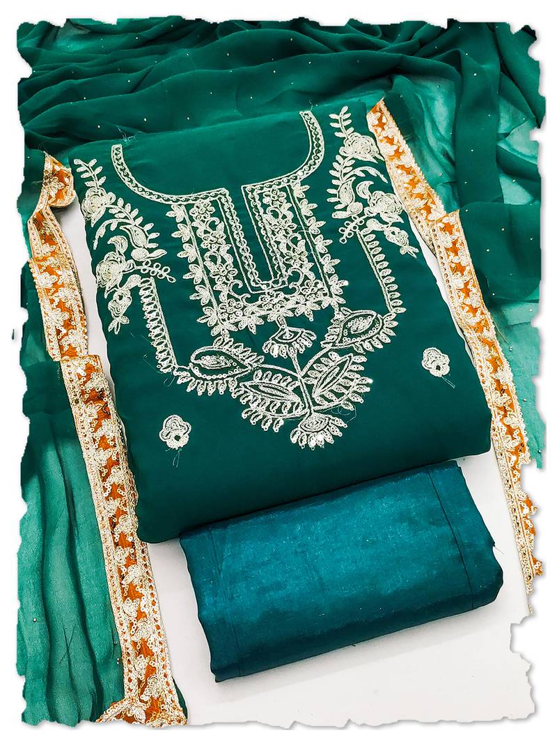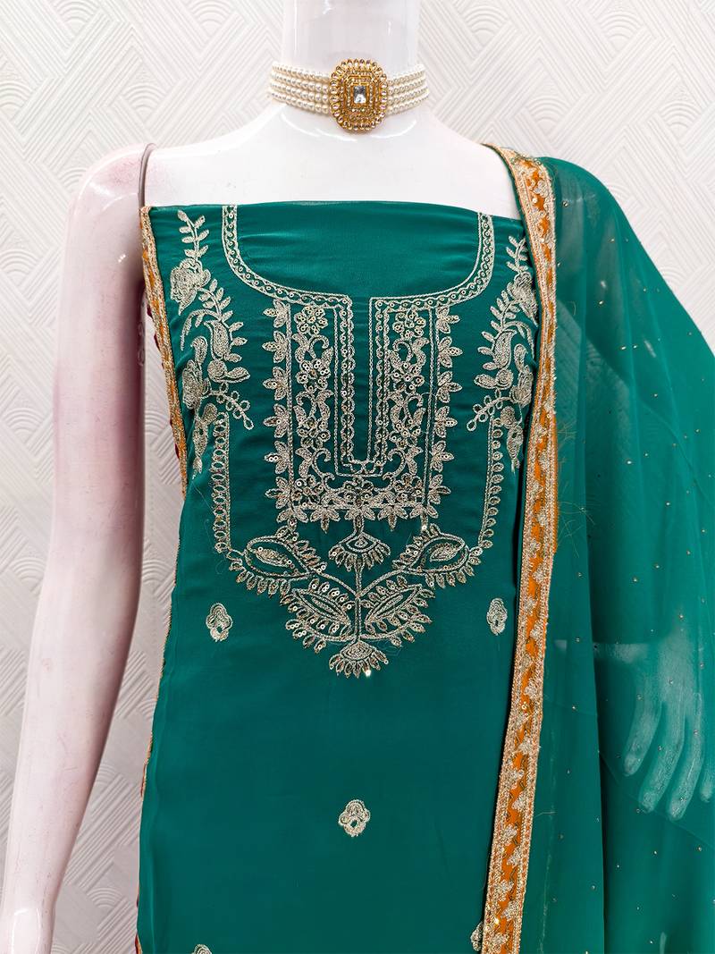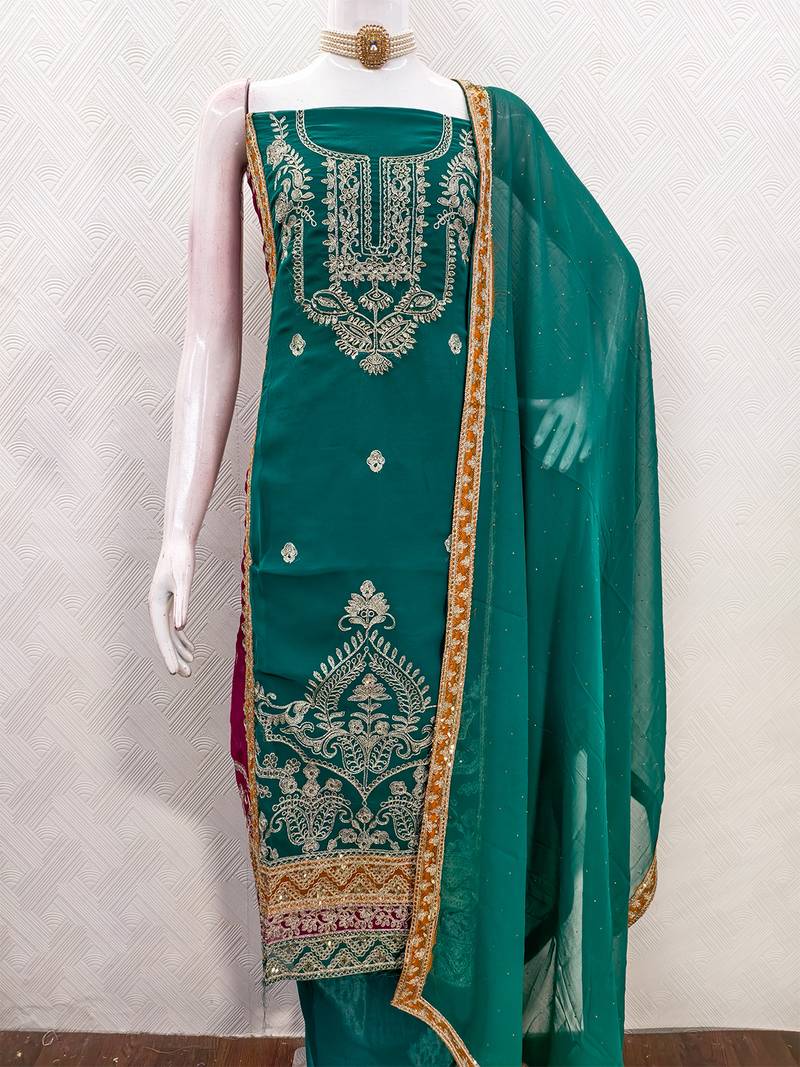 Product Name Women's Teal Georgette Salwar Suit Dress Material With Golden Thread Embroidery