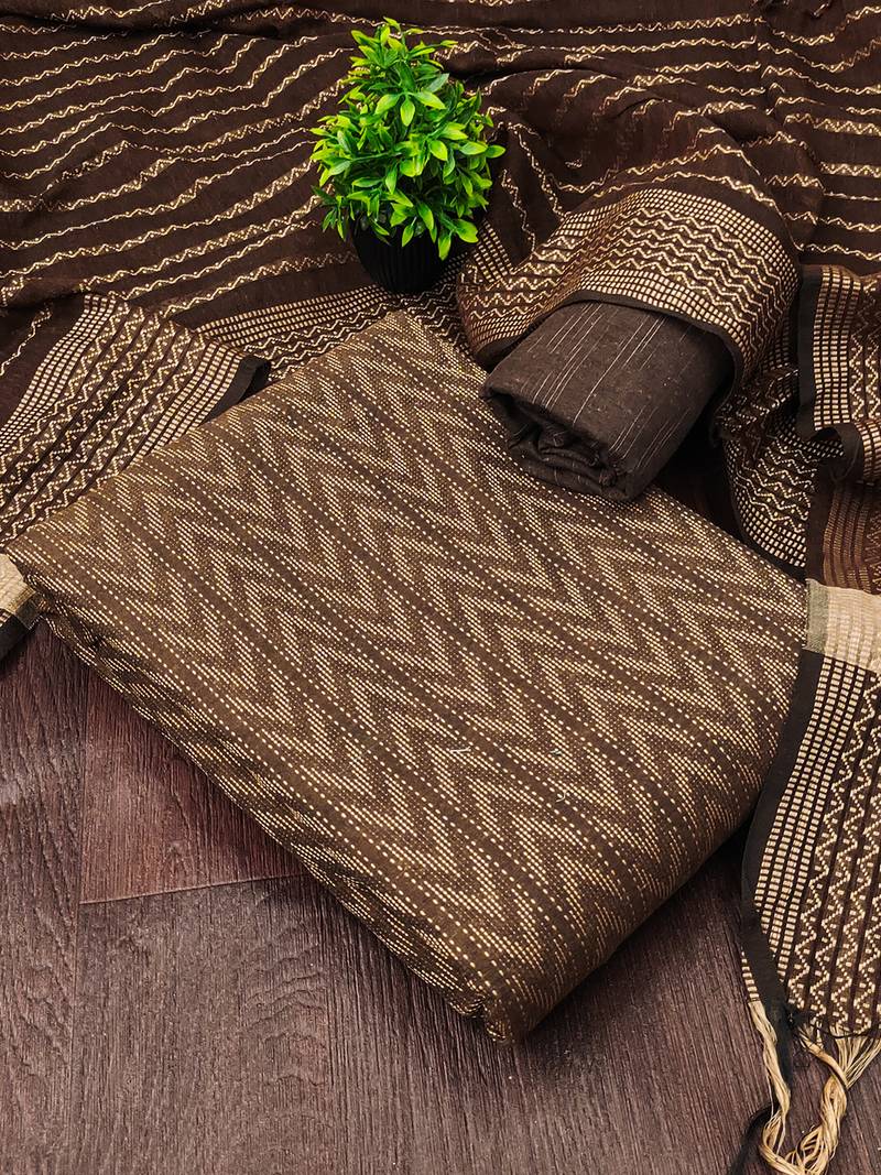 Product Name Brown Cotton Jacquard Salwar Suit Dress Material