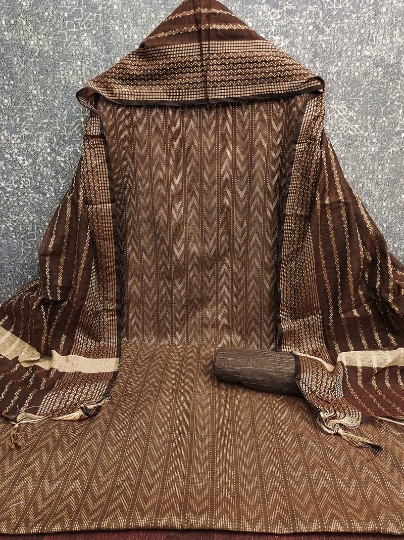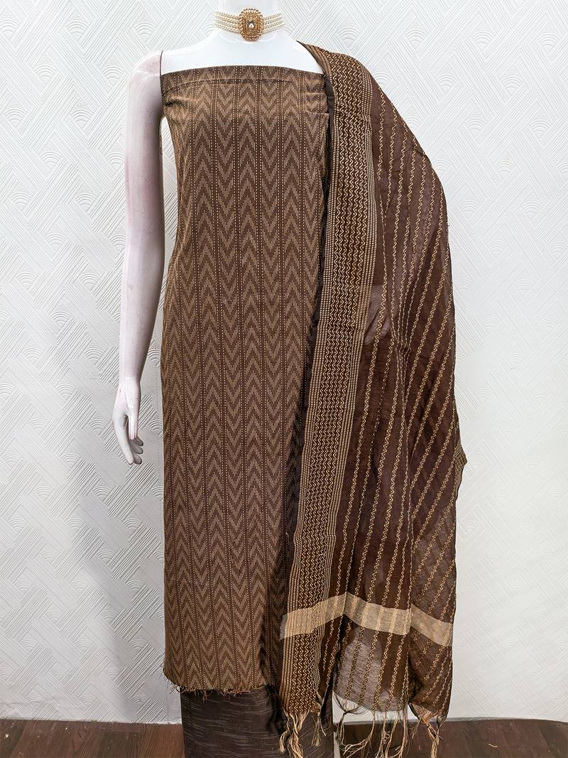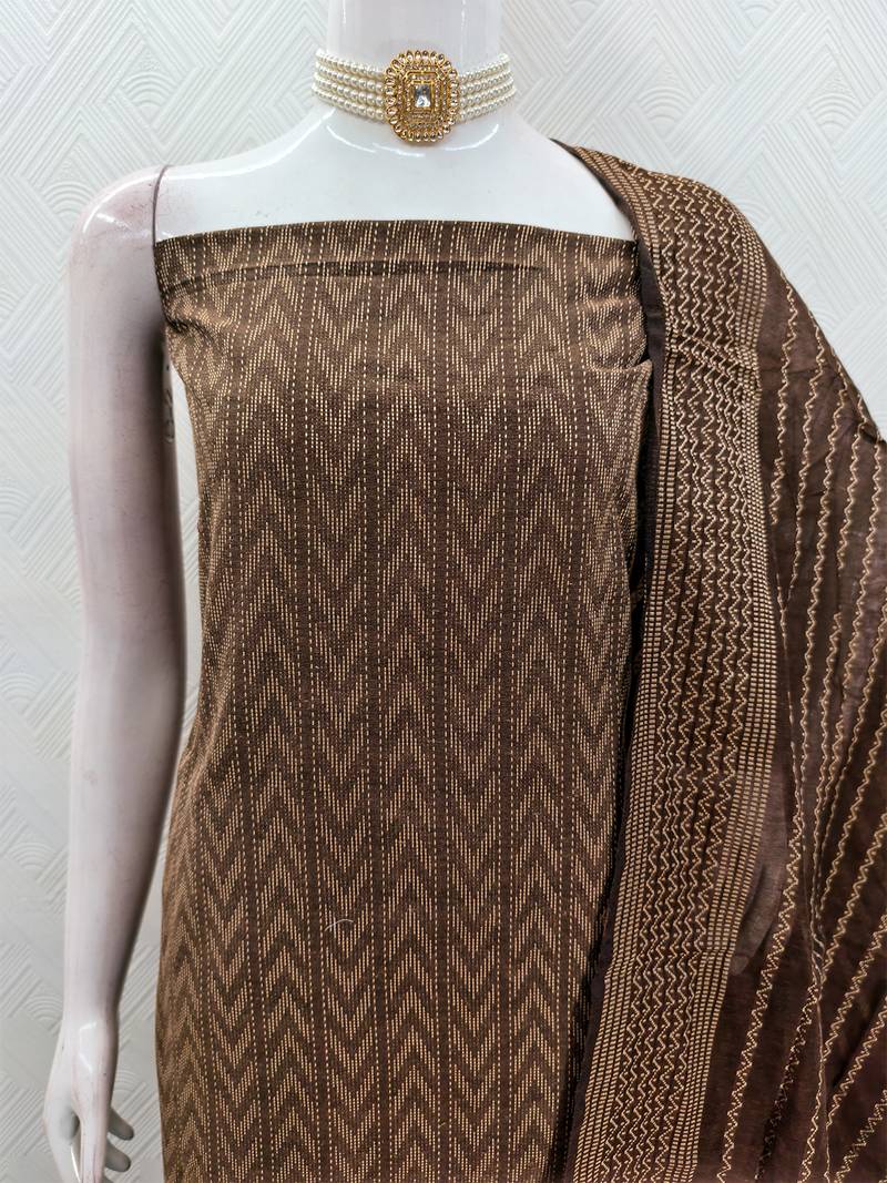 Brown cotton jacquard salwar suit dress material unstitched