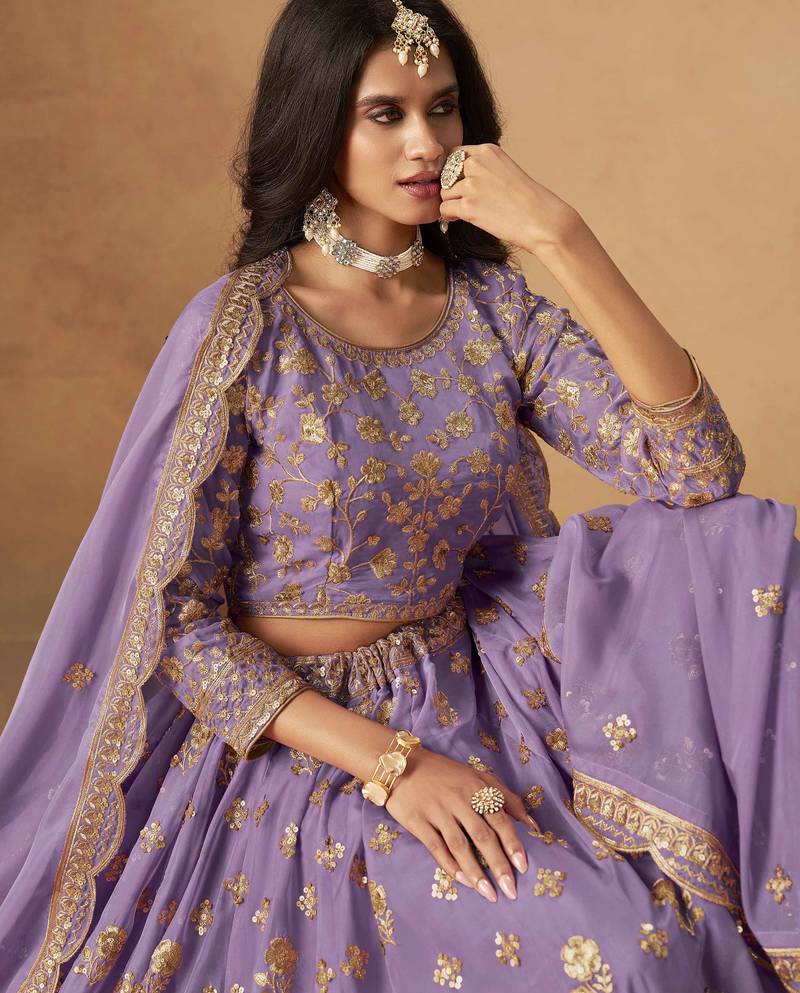 | Product Name | Lavender Organza Heavy Thread Embroidery Sequins Work Lehenga Choli | |