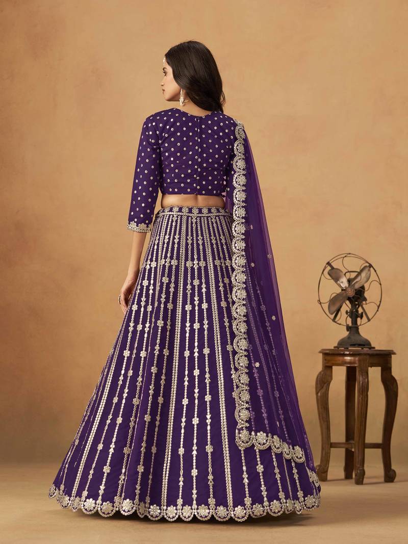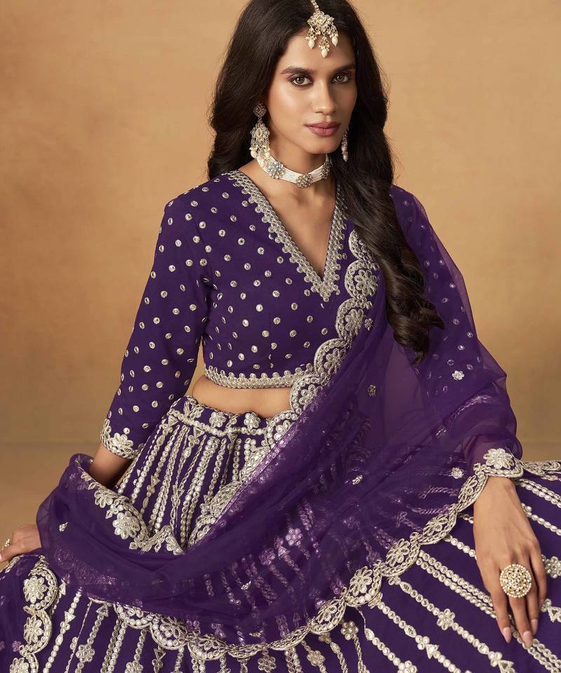 Purple art silk heavy thread embroidery gota work lehenga choli
