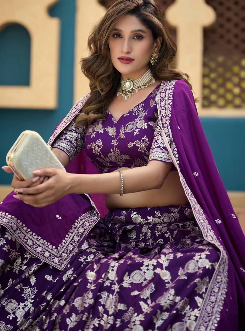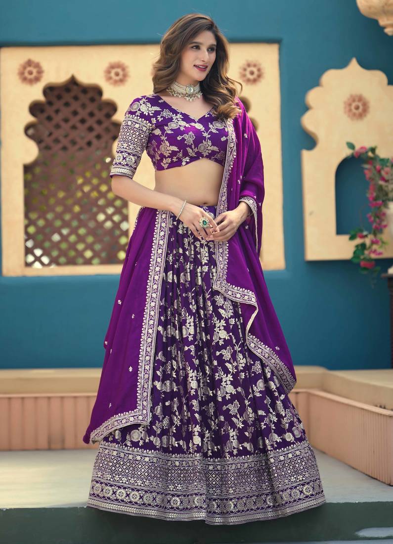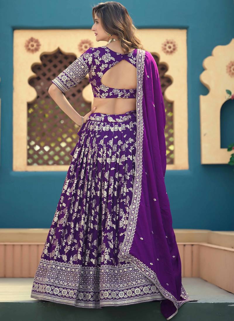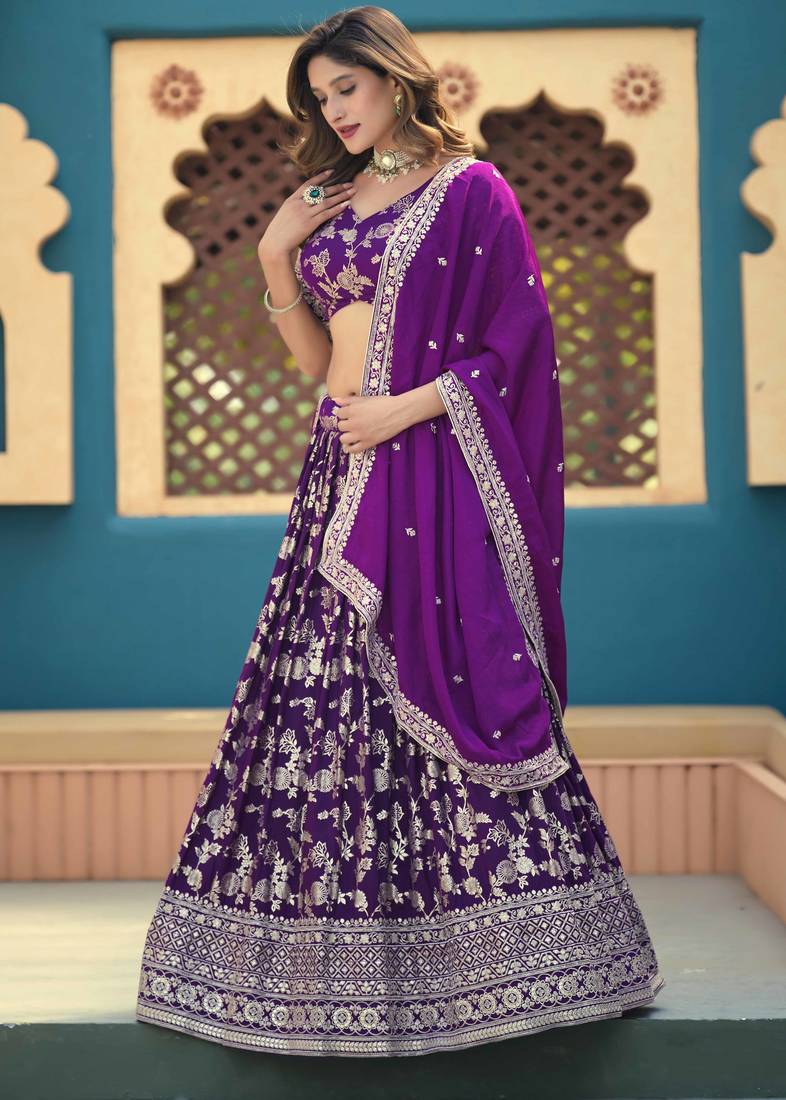 | Product Name | Purple Dola Silk Jacquard Woven With Heavy Thread Embroidery Sequins Work Lehenga Choli | |