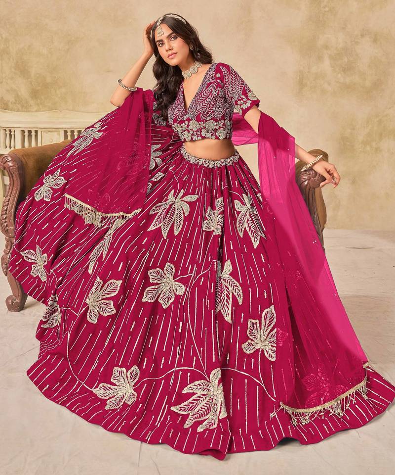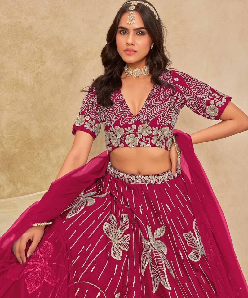 Rani pink art silk heavy thread embroidery with sequins work lehenga choli