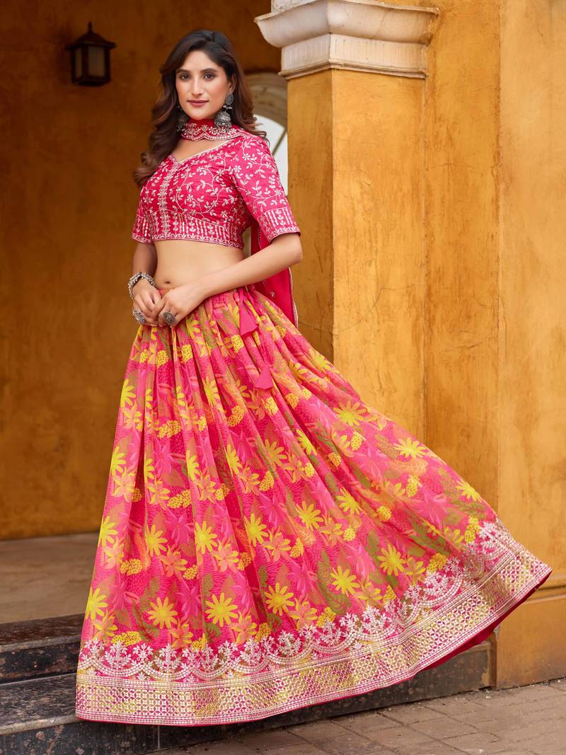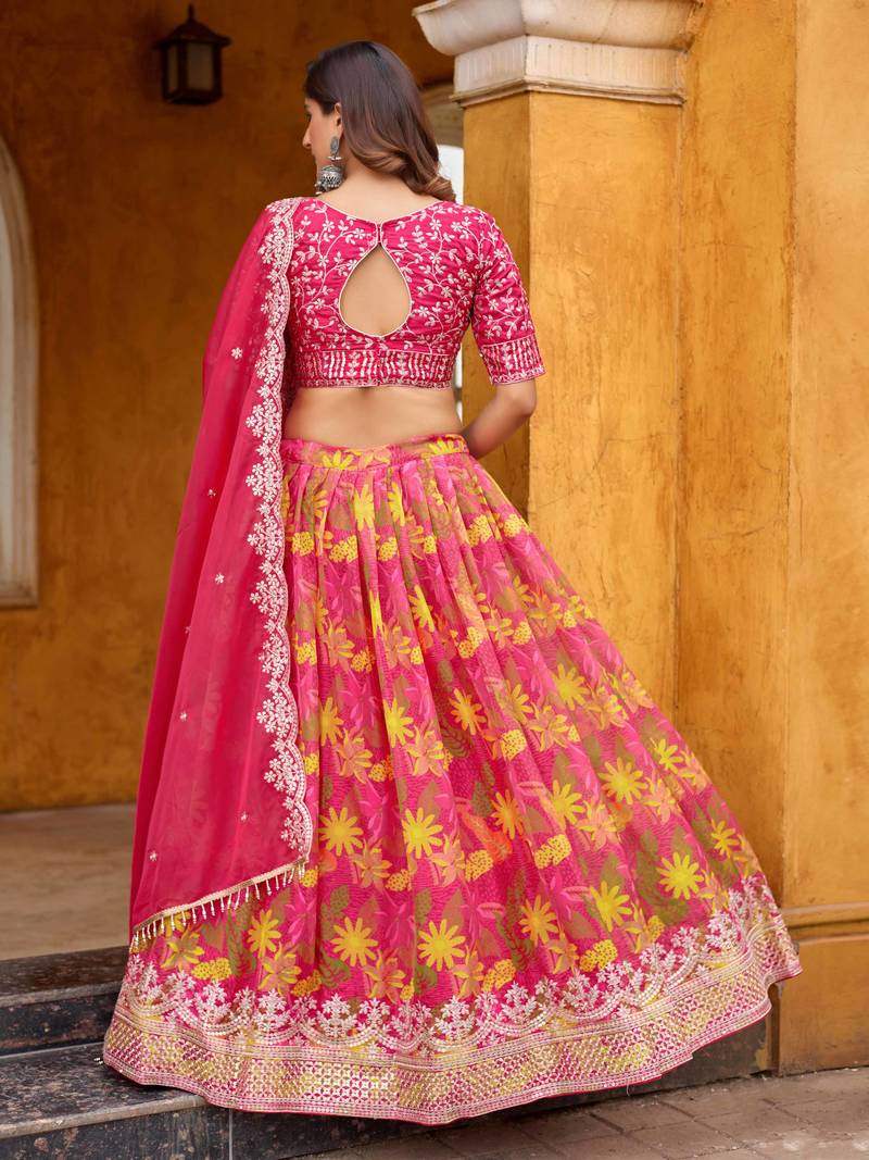 | Product Name | Rani Pink Taby Silk Print With Heavy Thread Embroidery Sequins Work Lehenga Choli | |