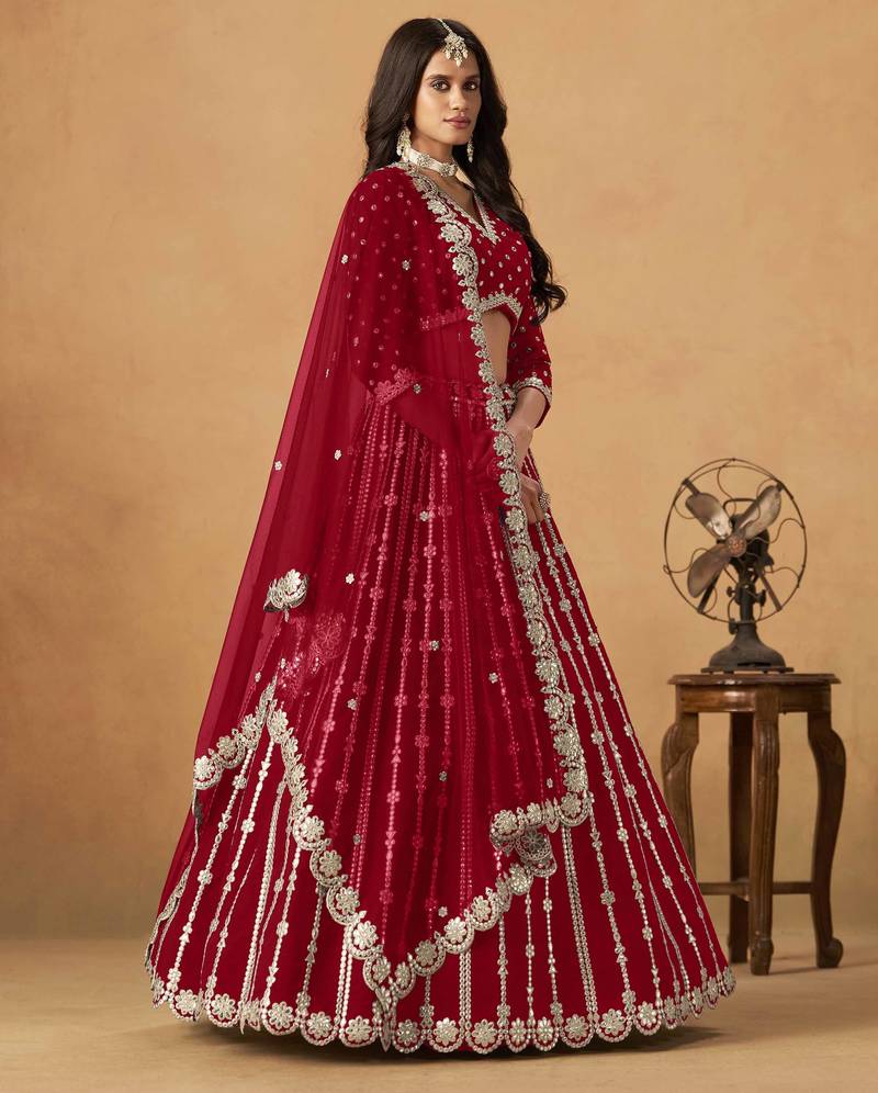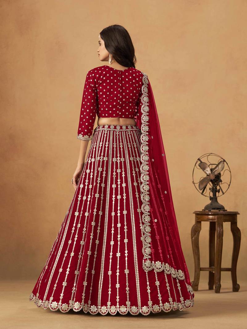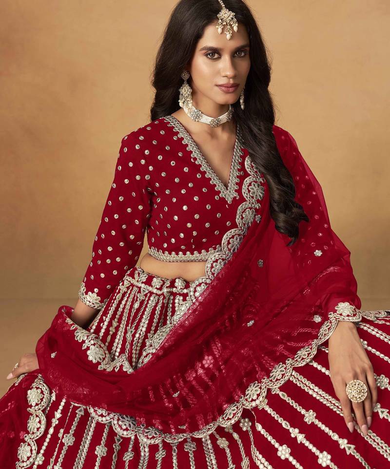 Red art silk heavy thread embroidery gota work lehenga choli